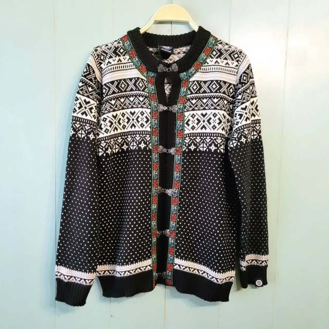 ノルディック柄とチロリアンテープ、 伝統的な編み方のバーズアイ、 そしてメタルフックの組み合わせがとにかく 可愛いウールニットカーディガンです♡ ❁素材 :ウール/アクリル ❁カラー:ブラック系 ❁サイズ:着丈 約65cm 身幅 約51cm 肩幅 約38cm 袖丈 約66cm ❁状態:目立った傷み、汚れ等なし ❁管理番号:SC1-79 ≪注意事項≫ ☾ 採寸に関しなるべく誤差のないよう気を付けていますが、若干のズレが生じる場合がございますのでご容赦ください。 ☾ 商品画像は出来る限り実物に近い色になるよう最善を尽くしておりますが、お使いのPCや携帯電話の環境や画質により、実物と異なる場合もございますのでご了承ください。 ☾ 掲載されております商品は基本的には1度誰かが大切に着用していた古着であり、何年もの時を経てきたものになります。ダメージやリペア跡などはできるだけ明記するよう心がけておりますが、気にならないようなダメージは記載を省略させていただく場合もございます。 ☾ 古着という観点からご購入後のキャンセルは原則的にお受けできませんので、ご質問等はご購入前にしていただき、よくご理解ご確認の上ご注文いただきますようお願いいたします。