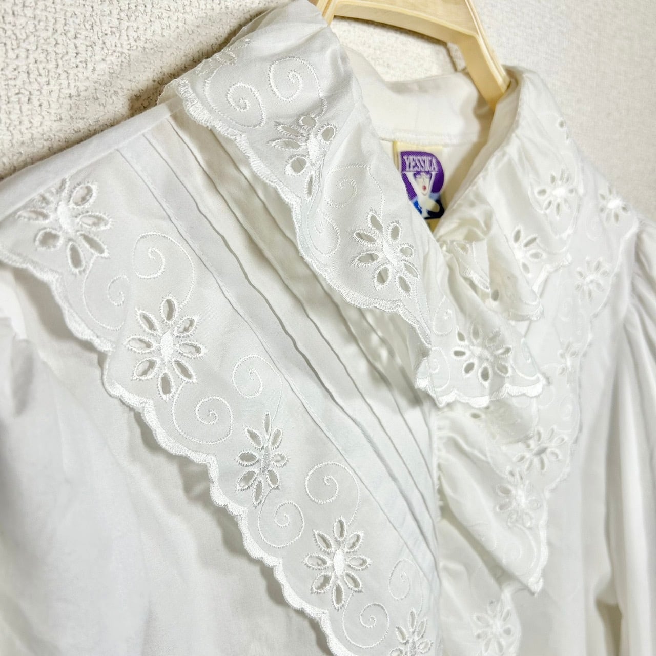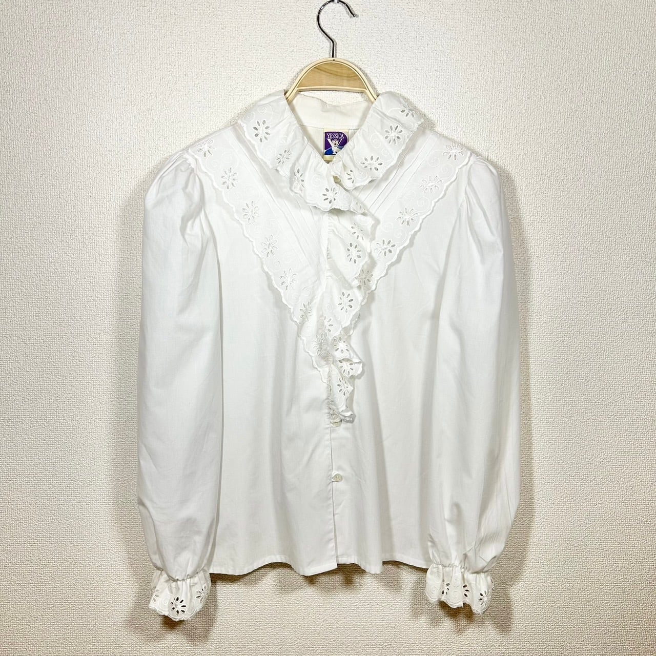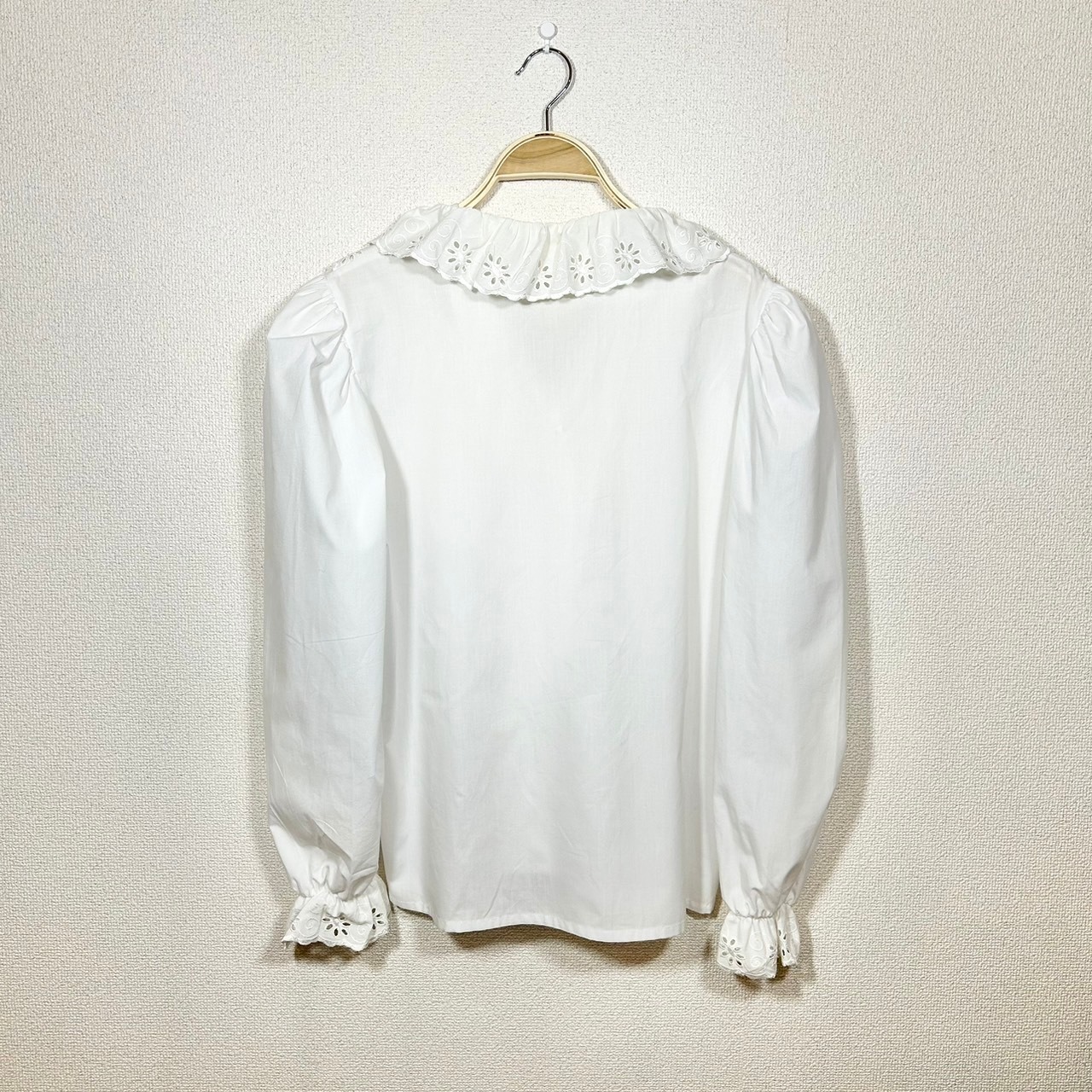 フリルが魅力的な2wayデザインの白ブラウス。襟フリルが施されたこのブラウスは、シンプルなスタイルながらも華やかな印象を与えてくれます。1枚でさらりと着用することはもちろん、インナーとして重ね着することでスタイルを楽しむことができます!特別な日やカジュアルなコーディネートに幅広く活躍するアイテムです。