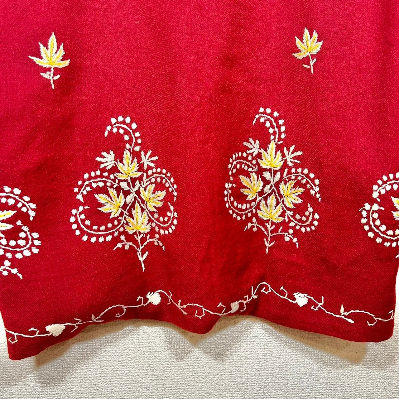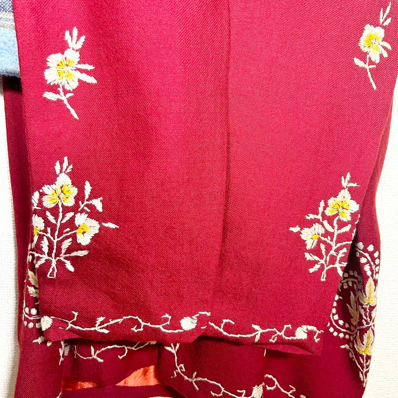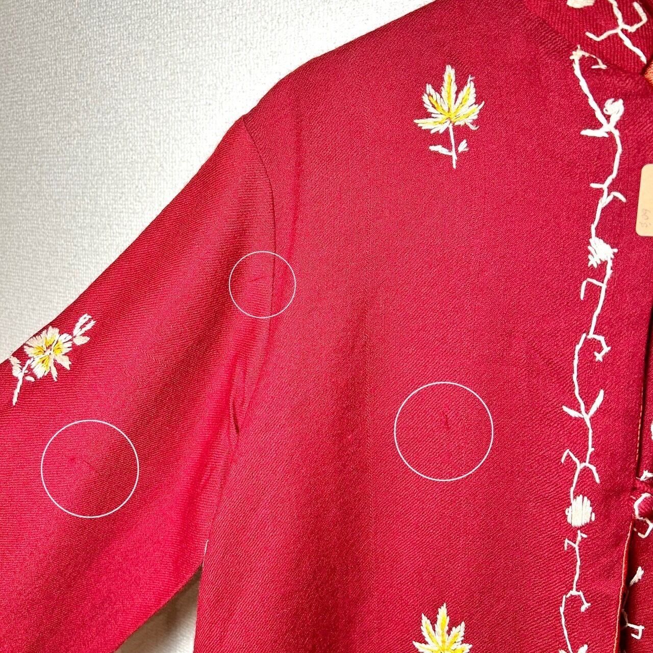 60'sの刺繍が施されたチャイナ風ウールジャケットです。濃い朱色のような色合いと繊細な刺繍が特徴です。1枚で着ても羽織として着ても素敵ですし、インナーを変えることで春先や秋冬も楽しめる1着です。