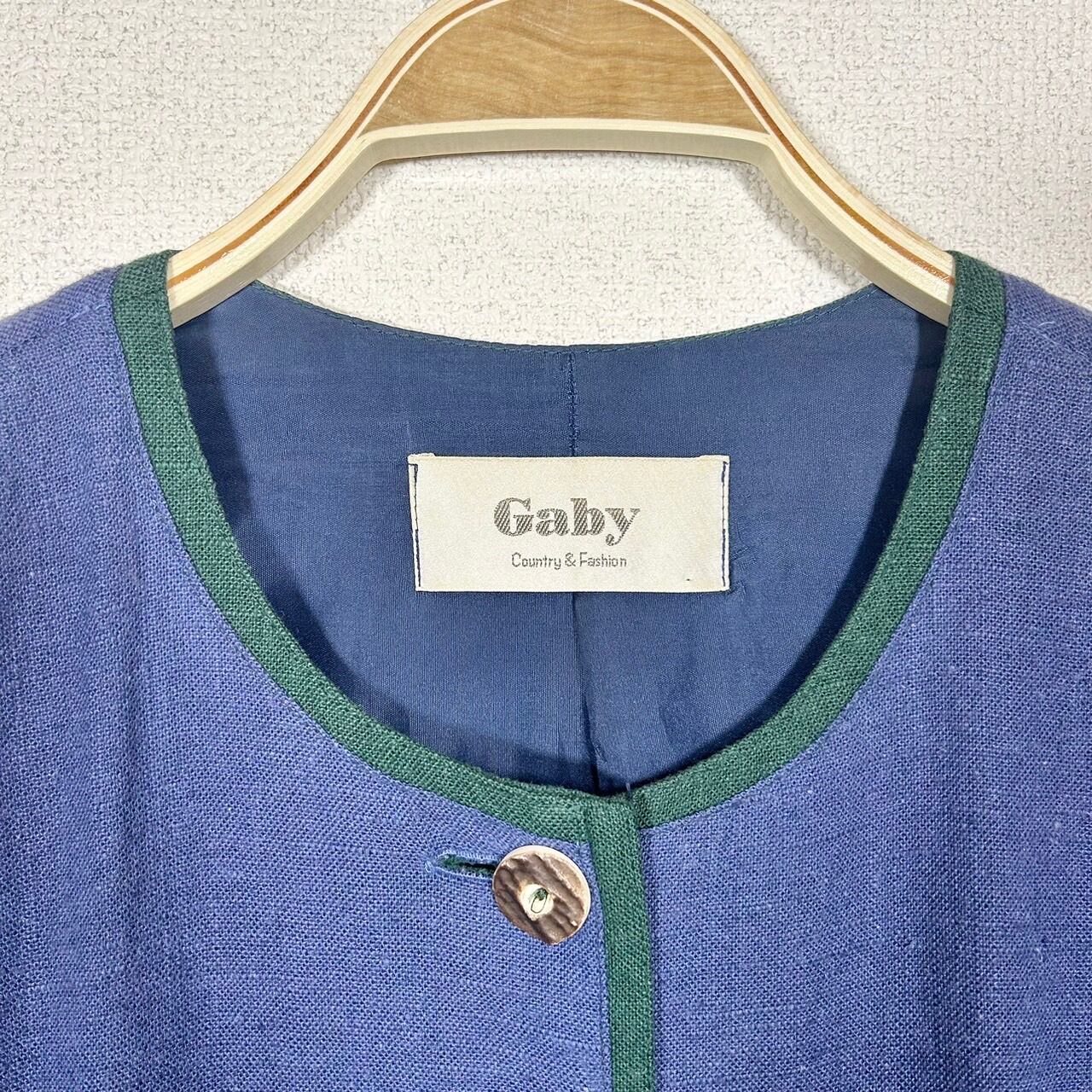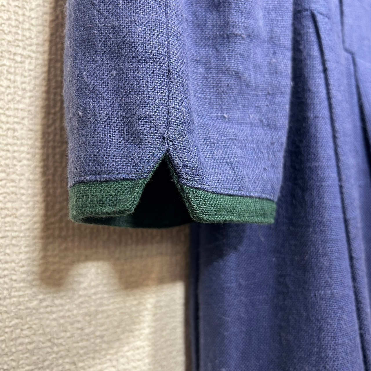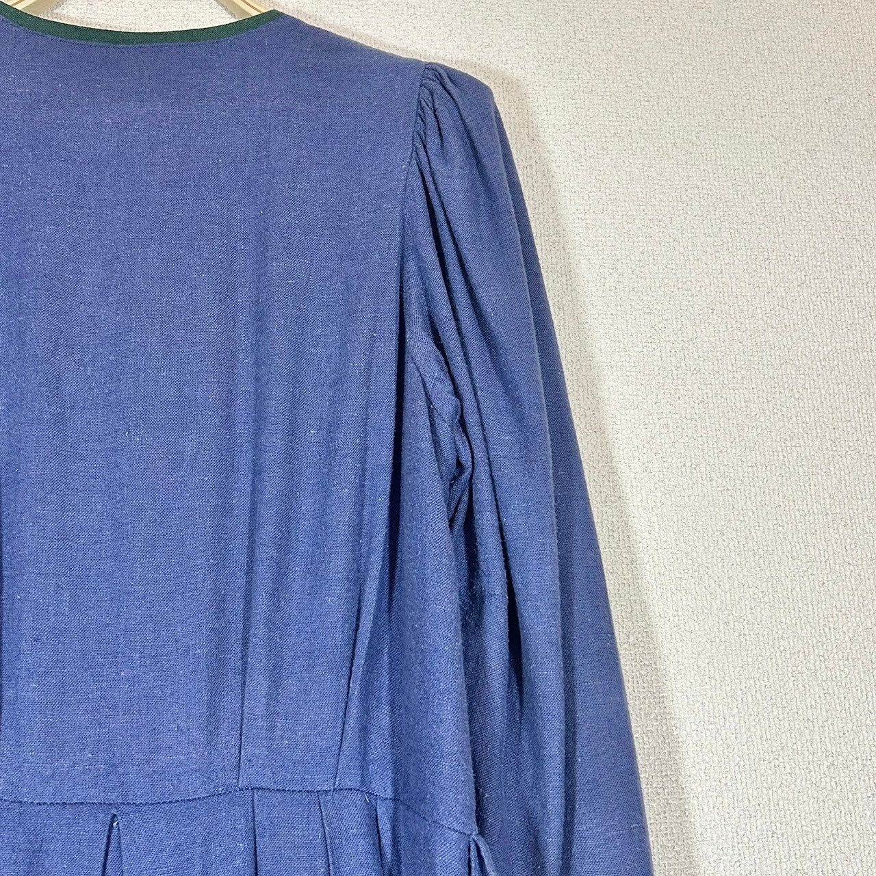Gaby Country & Fashion のVintage チロルワンピース。美しいブルーの色合いが魅力的で、袖口や襟からフロントボタンにかけての緑ラインが可愛い1着です。