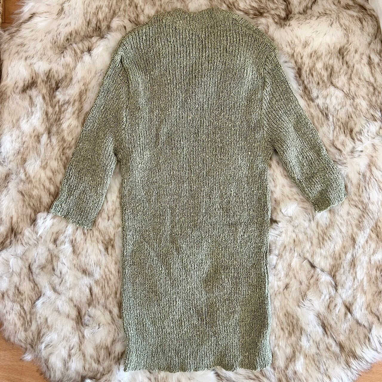 五分袖サマーニット。ライトグリーンの柔らかな色合いが、春夏のコーディネートにぴったりの一着です。五分袖デザインは、涼しげで軽やかな印象を与え、カジュアルスタイルにもおしゃれをプラスしてくれます。フロントの飾りボタンもポイントになって可愛いです。伸縮性のある素材が体にしっかりとフィットし、快適な着心地を実現しています。