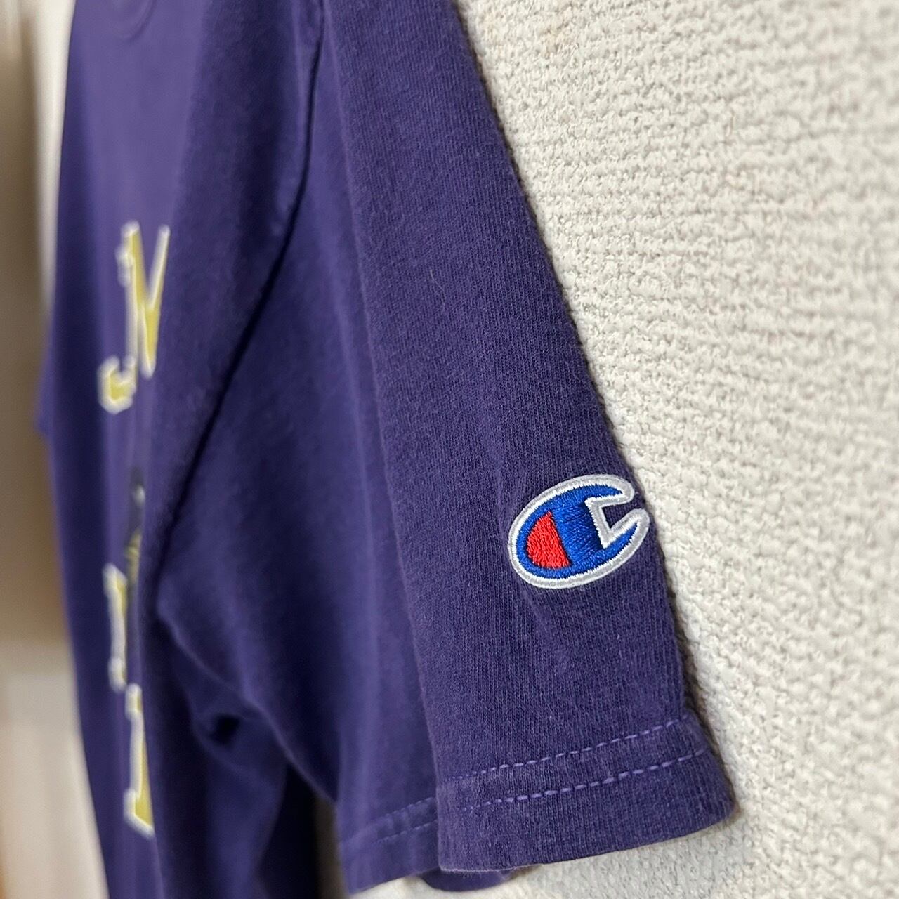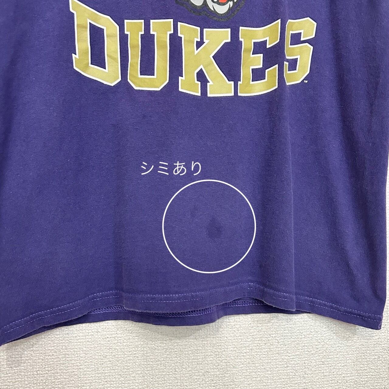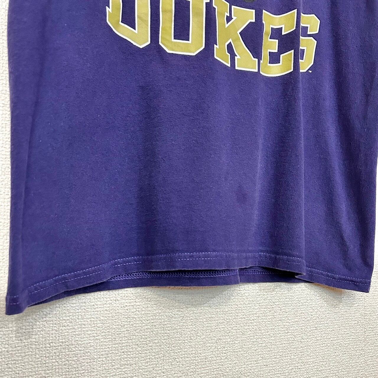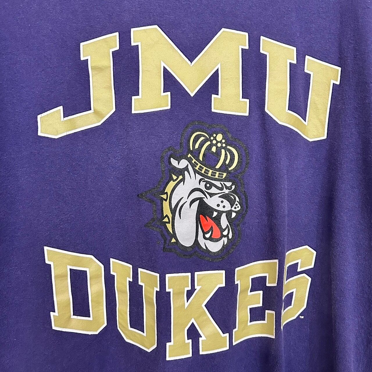 Champion Purple James Madison Dukes Tradition T-Shirt(チャンピオン パープル ジェームズ・マディソン デュークス トラディション Tシャツ) バージニア州ハリソンバーグに位置するジェームズ・マディソン大学のトラディショナルTシャツ。大学名のJMUとマスコットであるデュークスのロゴがデザインされたTシャツ。王冠をかぶったブルドッグが特徴で大学の伝統を感じさせるデザインが印象的な1着です。