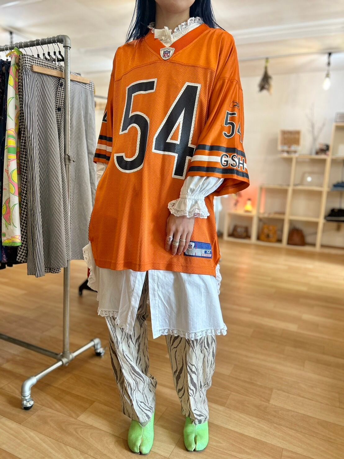 Reebok NFL シカゴベアーズ プリントメッシュゲームシャツ。 NFLの名門チーム、シカゴベアーズの選手ブライアン・アーラッハーのプリントが施されたメッシュゲームシャツです。100%ナイロンの素材感で心地よく軽やかに着こなせるデザインの1着です。