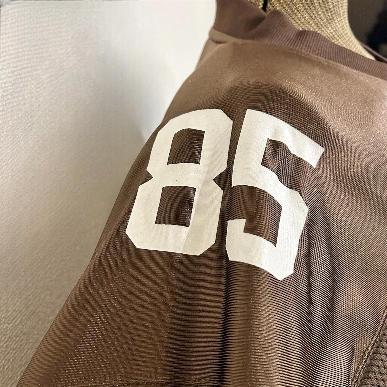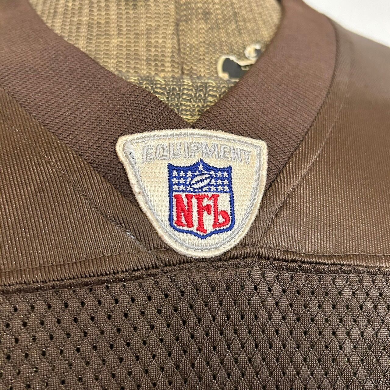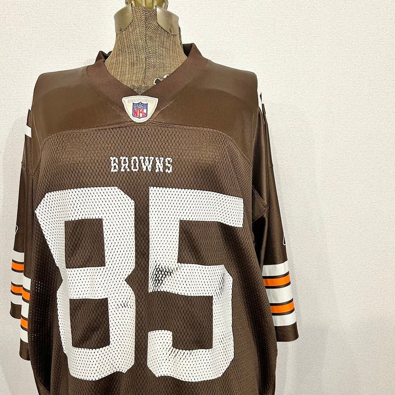 Reebok NFL クリーブランド・ブラウンズ プリントメッシュゲームシャツ。NFLのチーム、クリーブランド・ブラウンズの選手が着用していたプリントを施したメッシュゲームシャツです。100%ナイロンの素材で、軽やかな着心地のデザインの1着です。