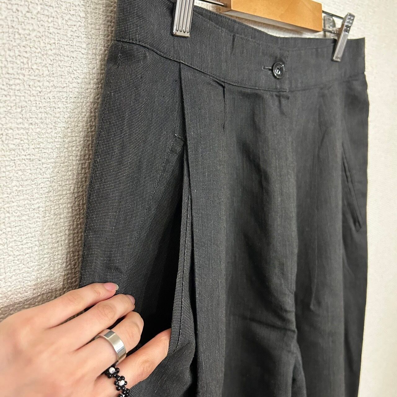 おしゃれなダークグレイのサルエルパンツです。コットン×レーヨンの素材感が柔らかな肌触りで履き心地が良い1着です。ゆったりとしていながらも腰周りにタックが入っていて形がしっかりしているので、モードスタイルやカジュアルスタイルにも合わせやすい1枚です。