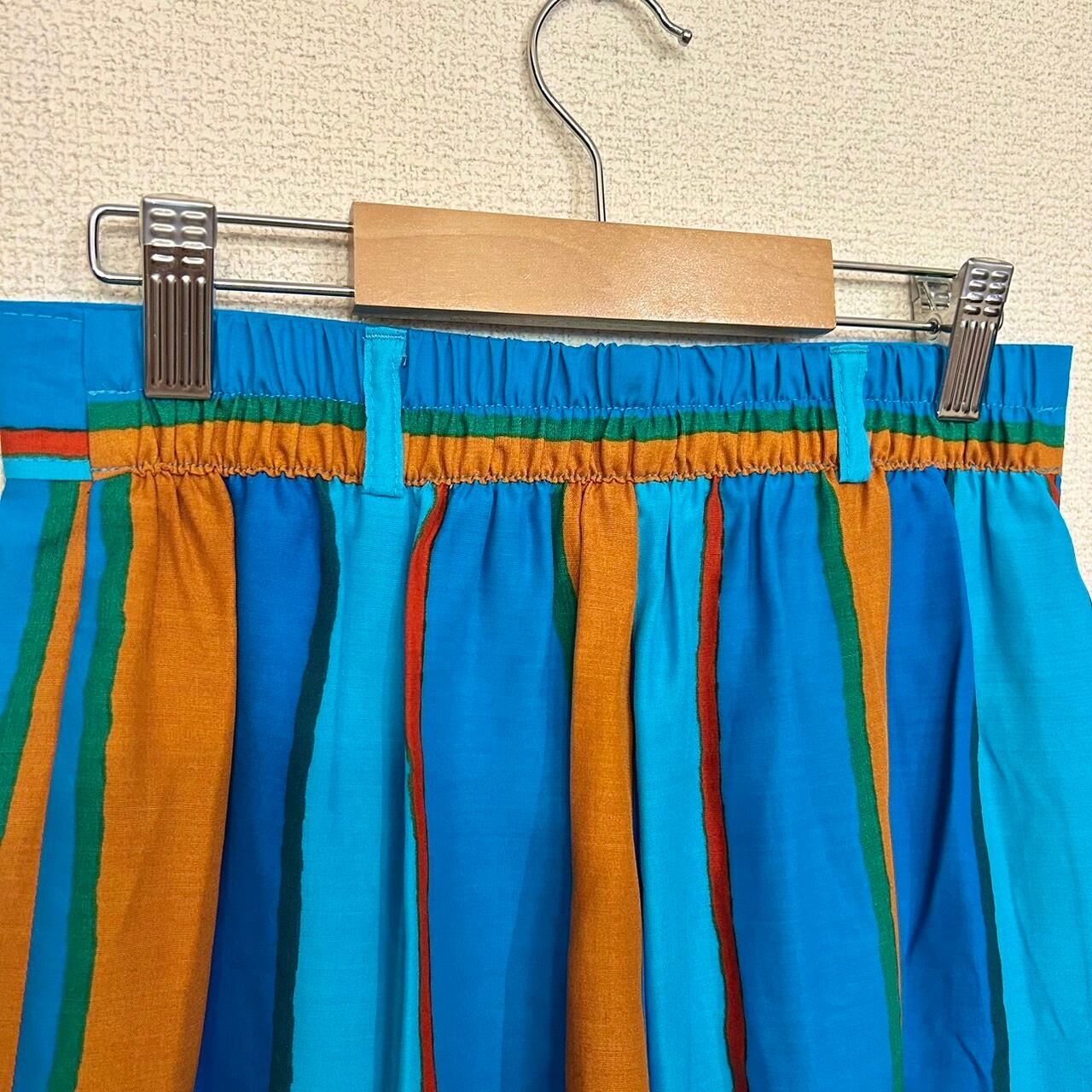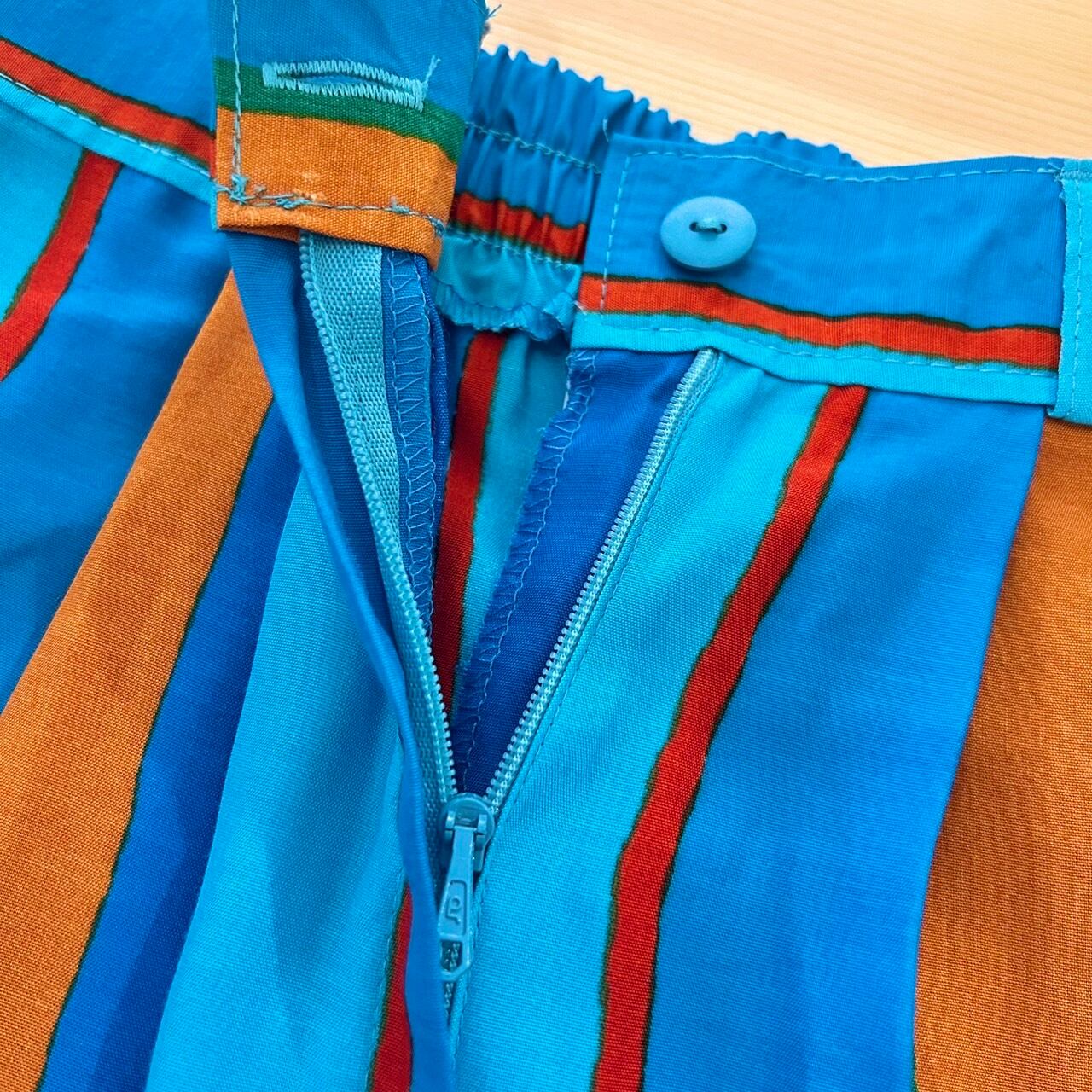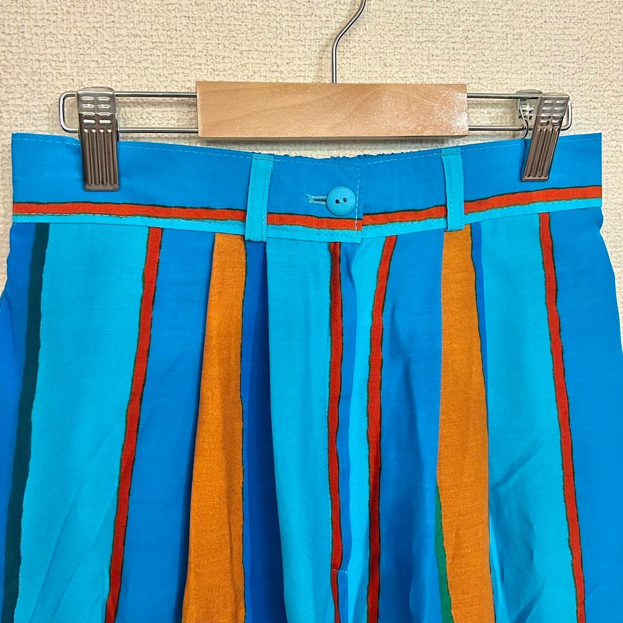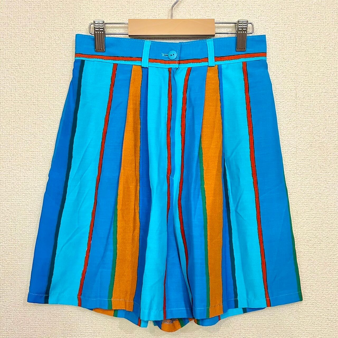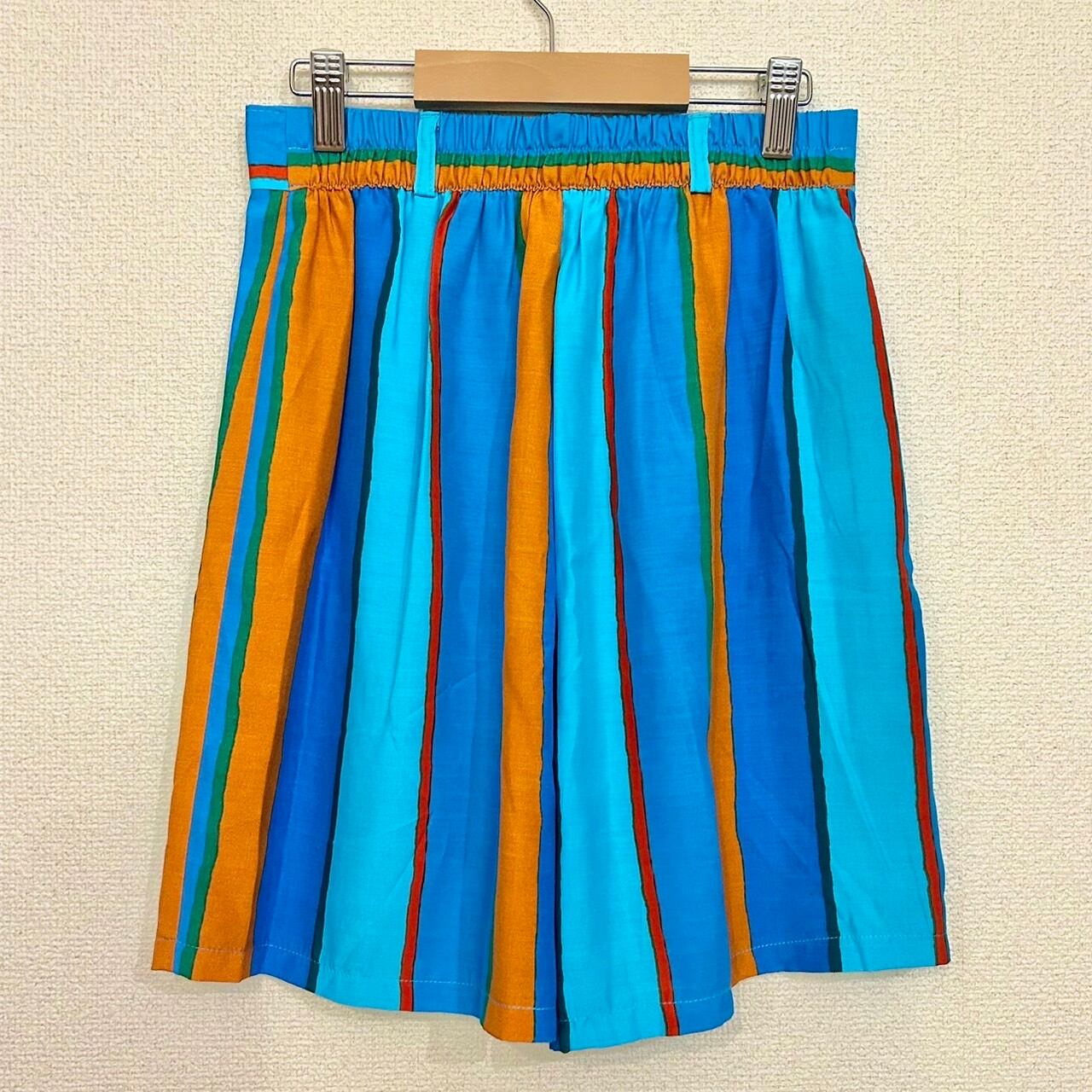 爽やかな青系にオレンジ・赤・緑ラインが映えるストライプショートパンツです。
