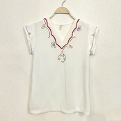 刺繍が施された半袖ブラウス。
