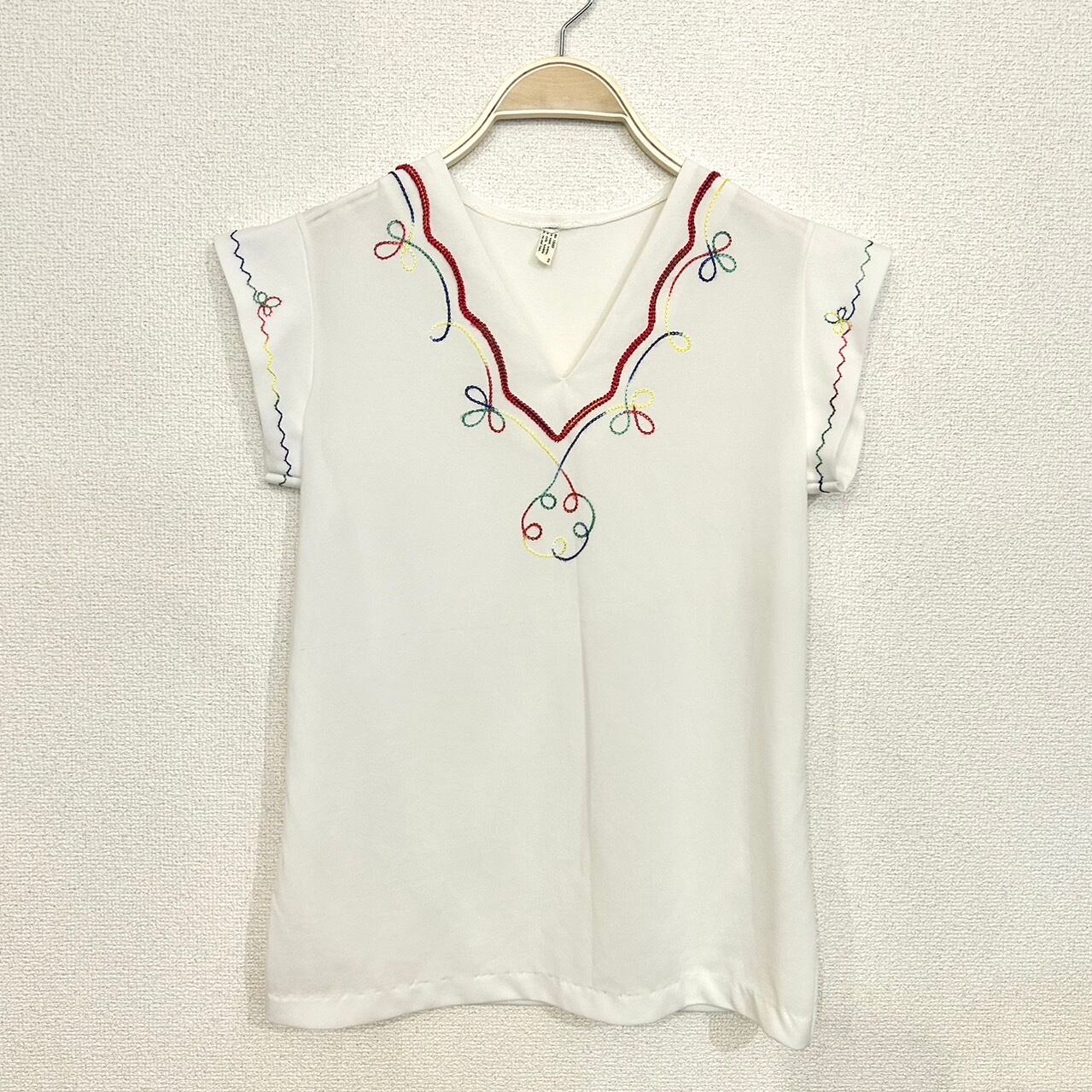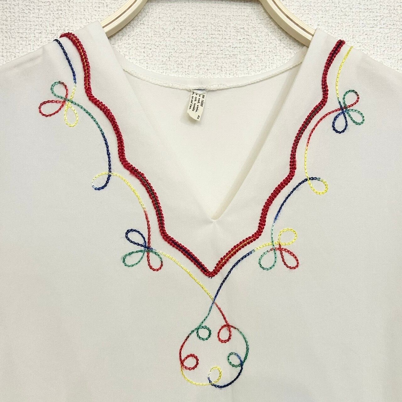 シンプルながらもカラフルなチェーンステッチが施されていてとても素敵なブラウスです。