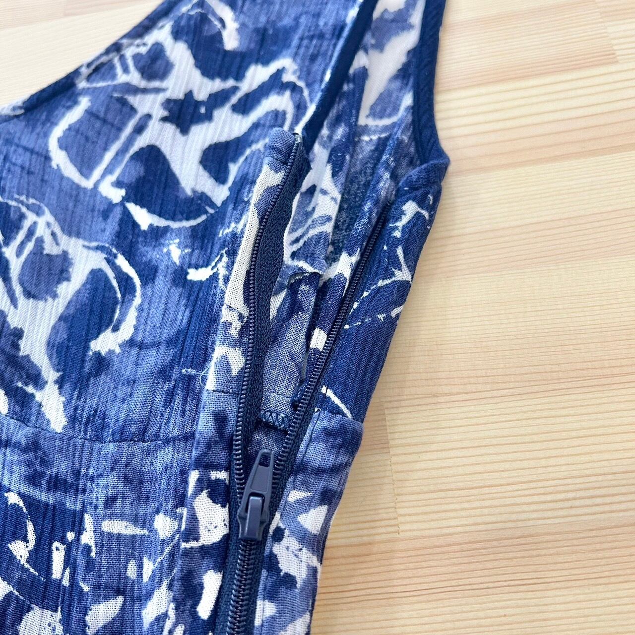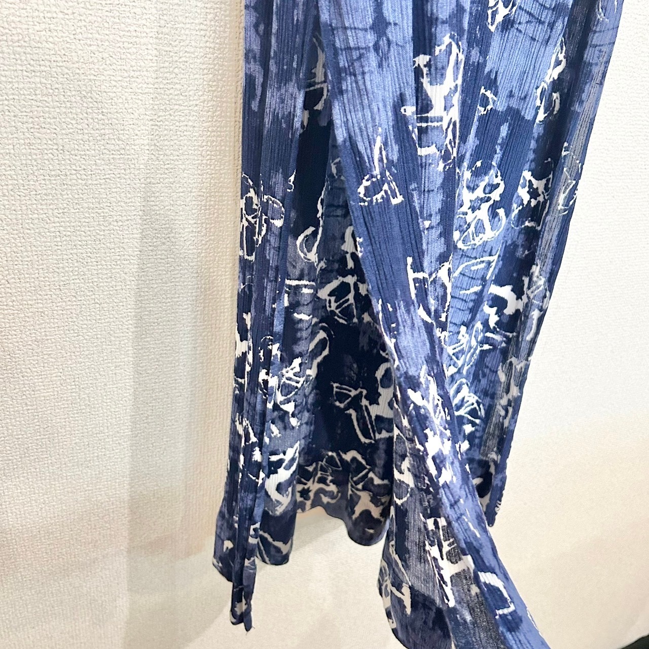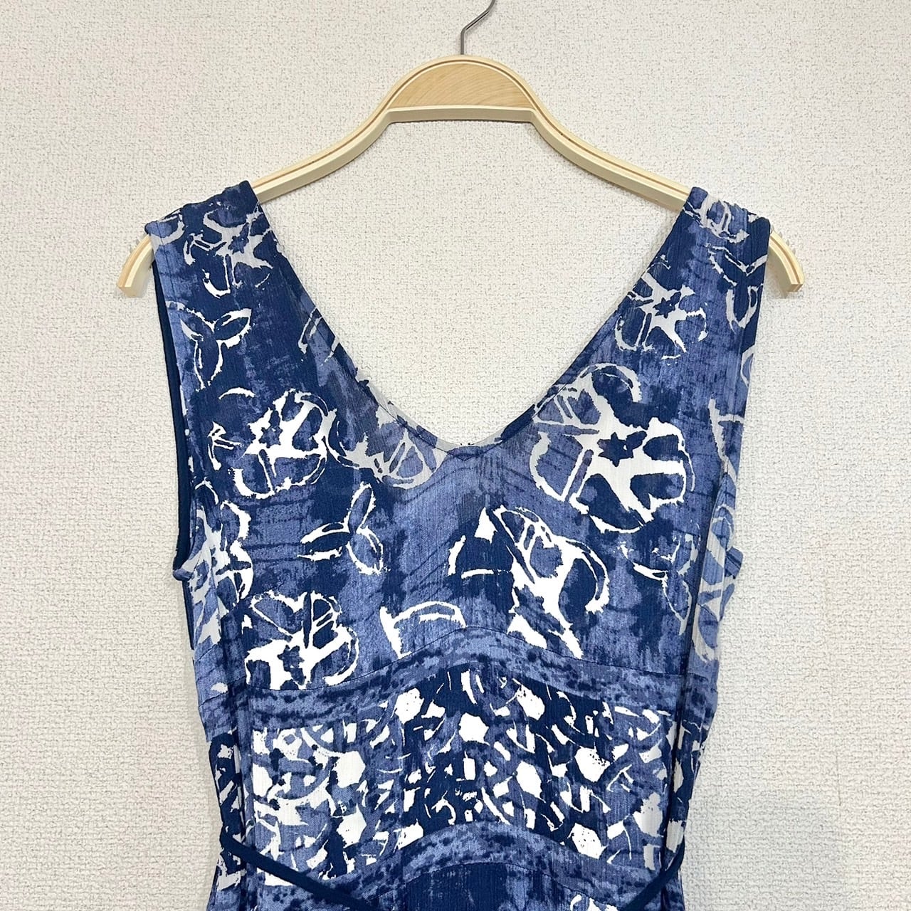 ノースリーブワンピース。横にスリットが入ったロング丈のワンピースで、涼しげな素材感が暑い季節にもサラッと着れる1着です。腰ひもが付いているのでウエスト周りをキュッと縛って着ることもできます。