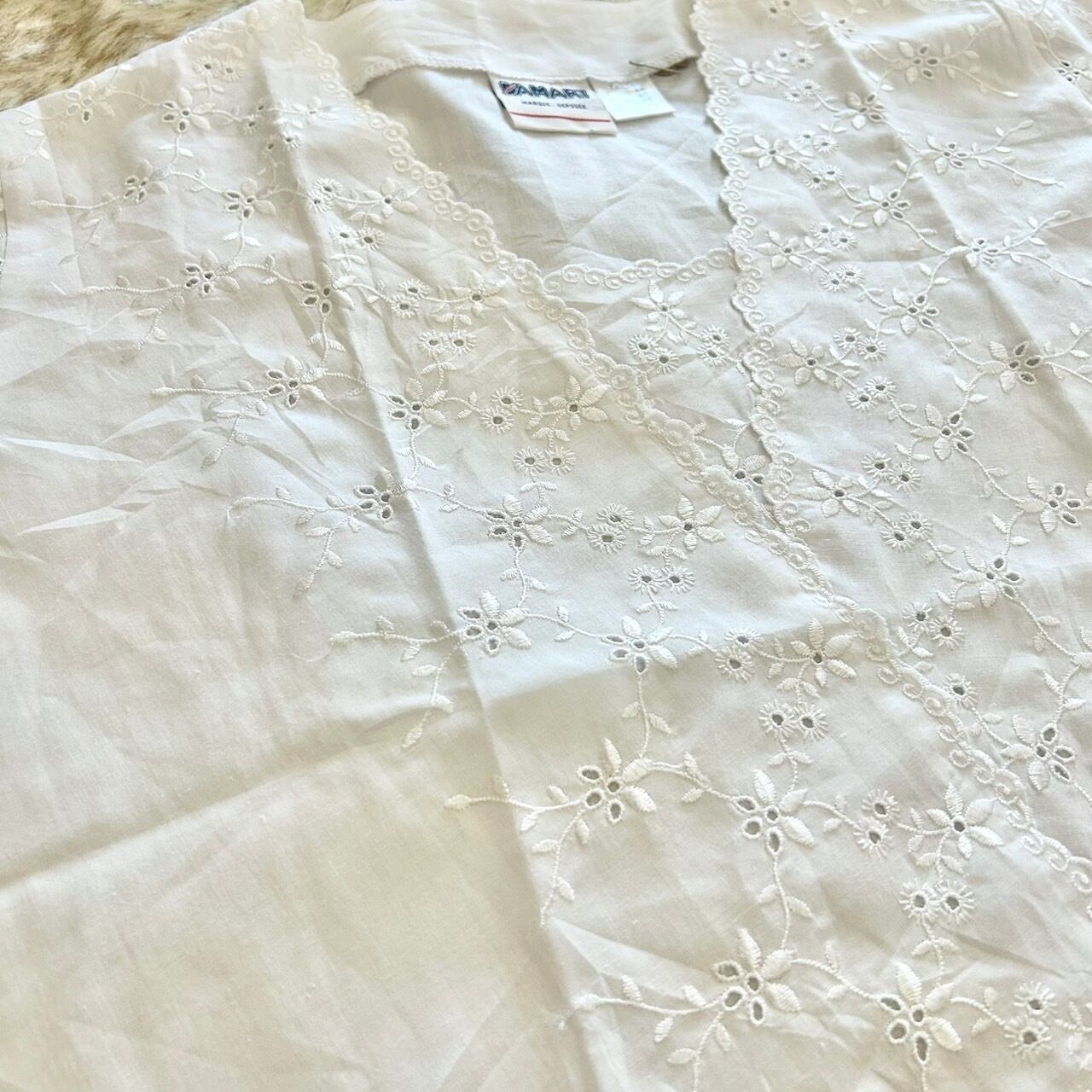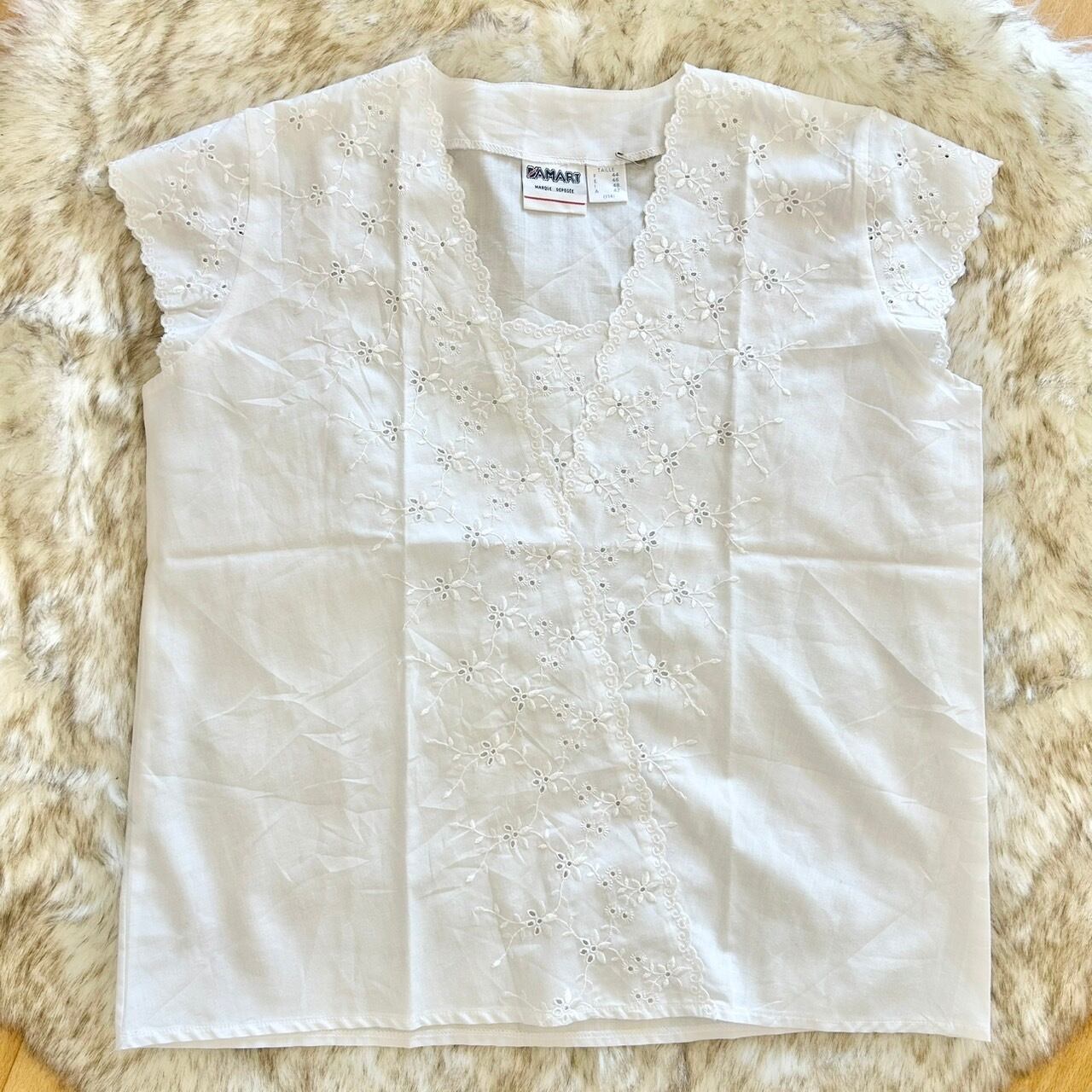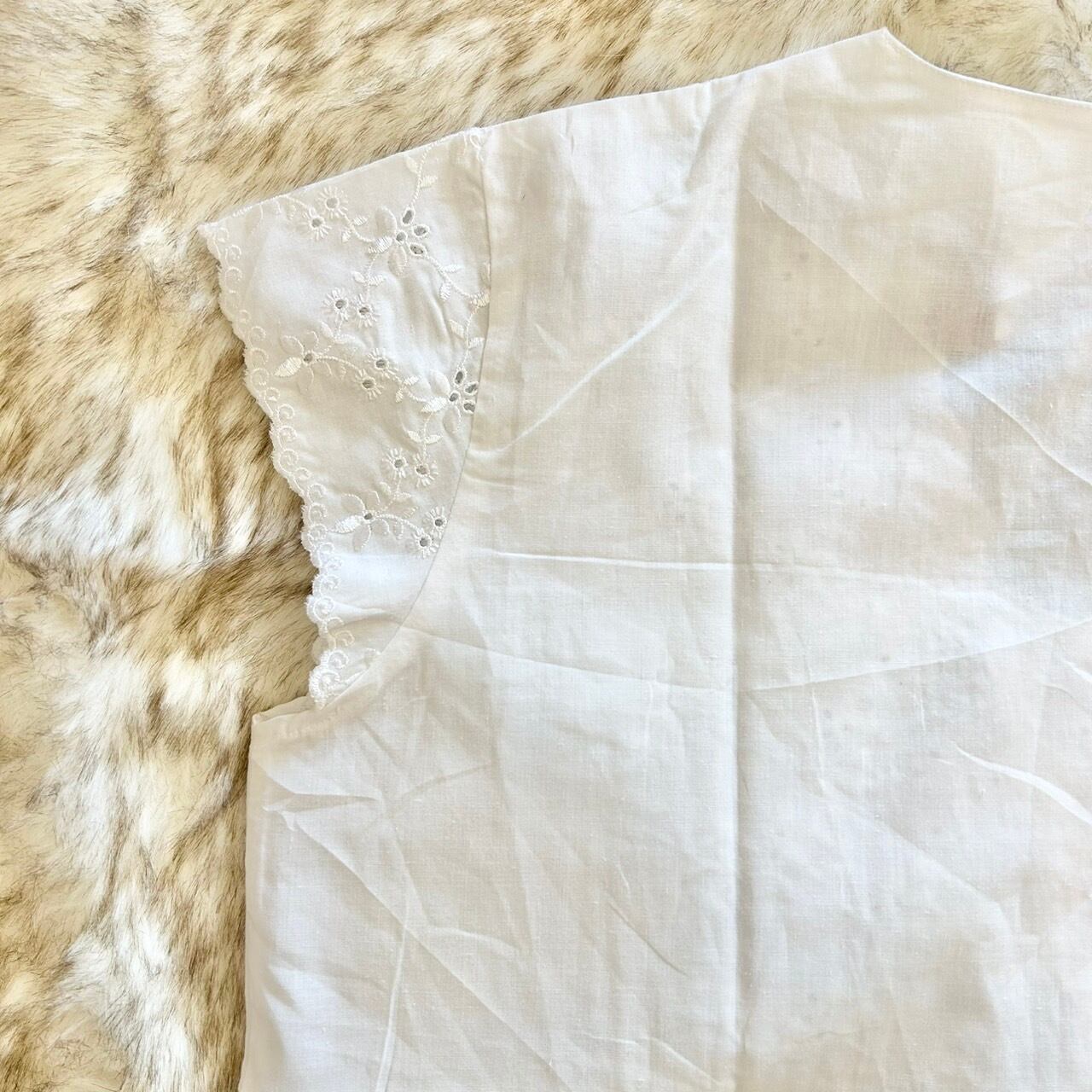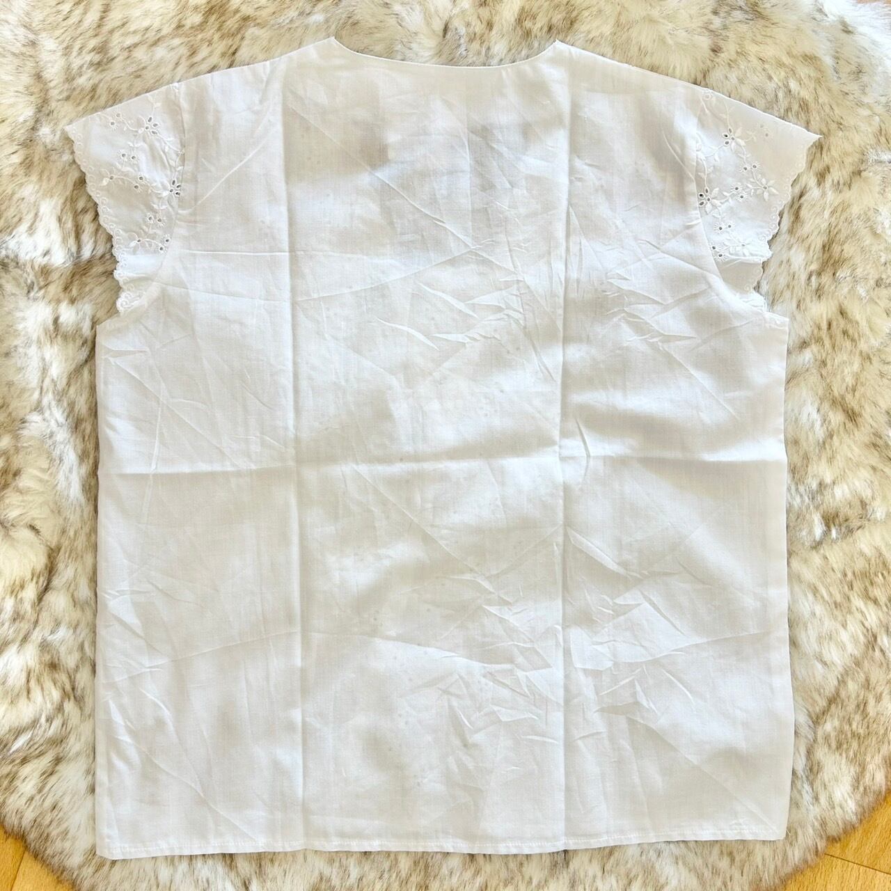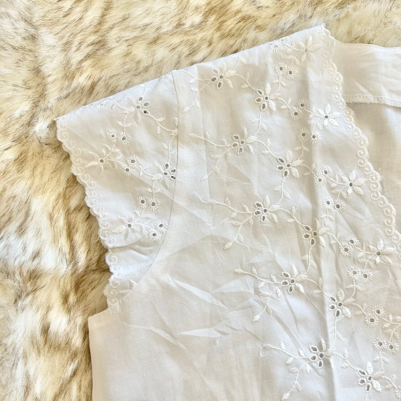袖やフロント全体が刺繍レースになっている白ブラウスです。