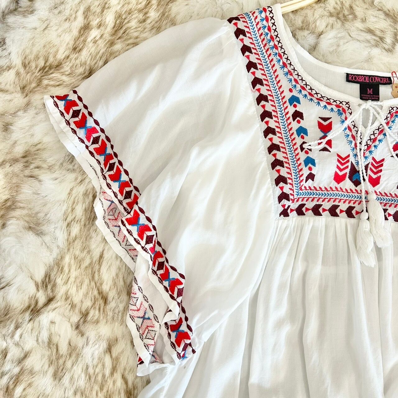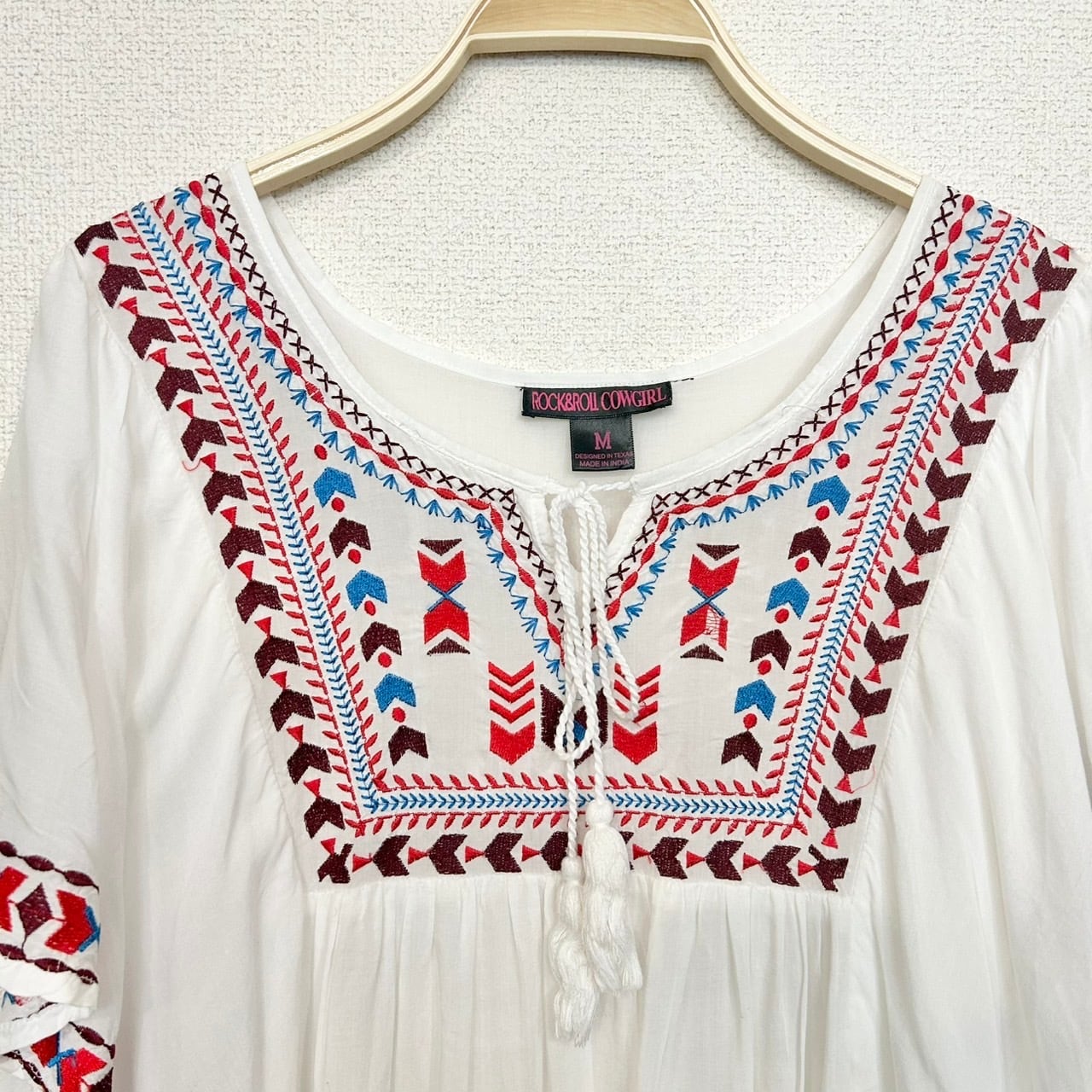 インド刺繍チュニック。柔らかく着心地のいいチュニックです。袖部分も二の腕が程よく隠れて暑い時期に着るのにもピッタリな1着です。