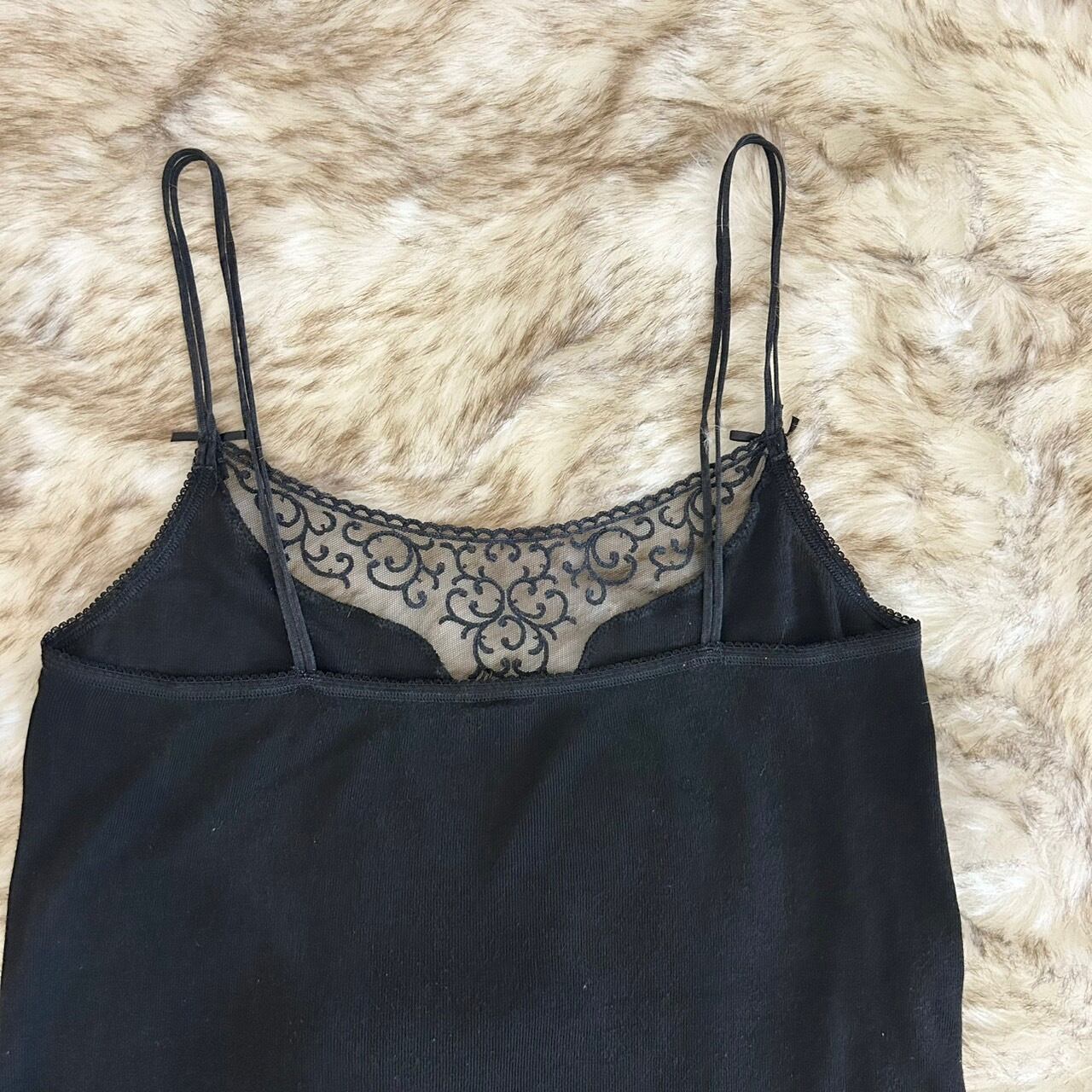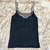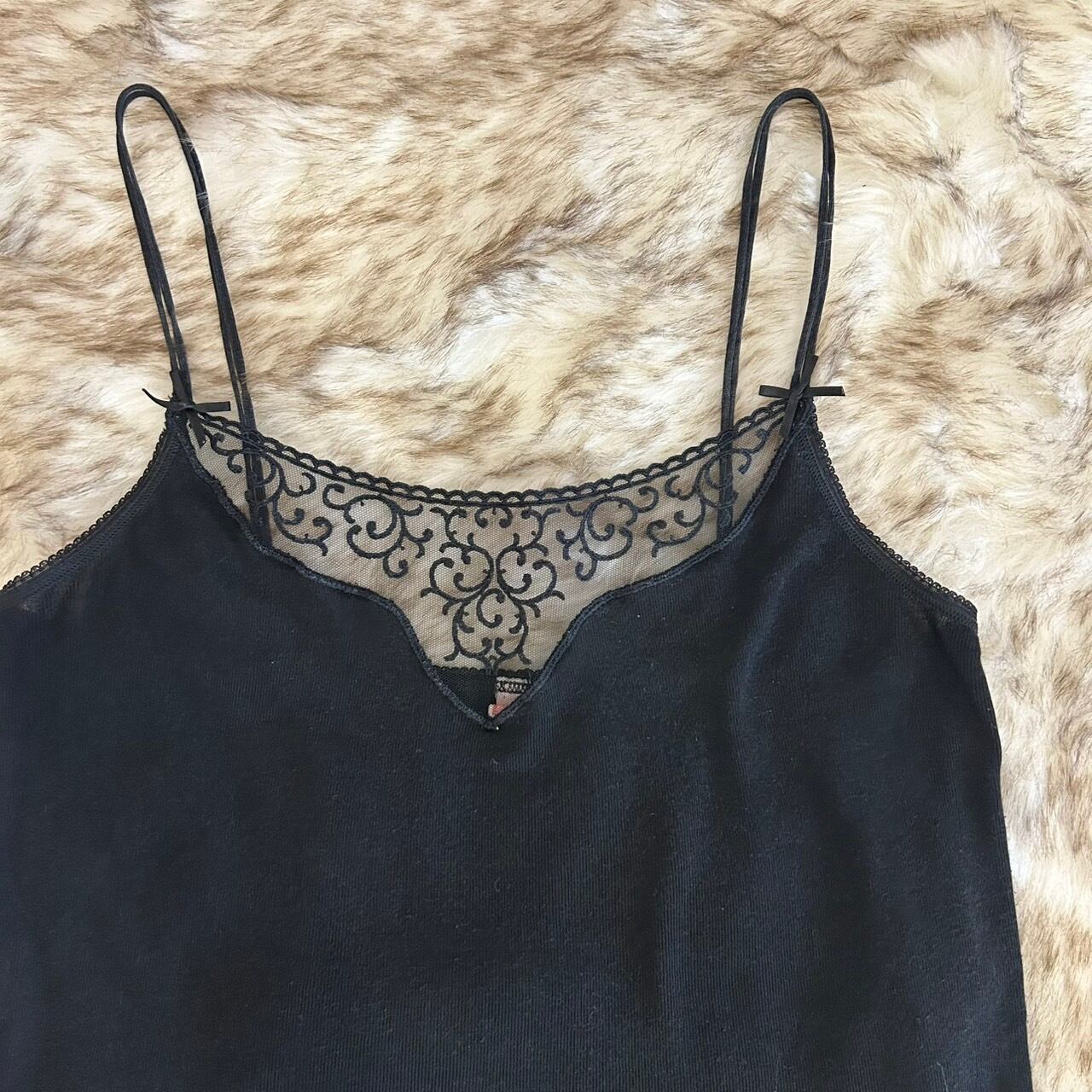 トリンプの胸元レースのキャミソール。シンプルなブラックのキャミソールなのでレイヤードなど使いやすくて可愛いアイテムです。肩紐は調節不可。