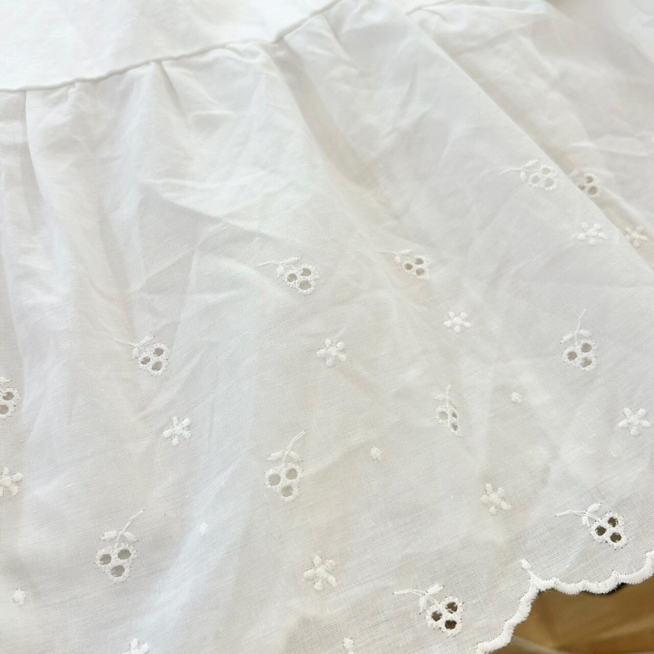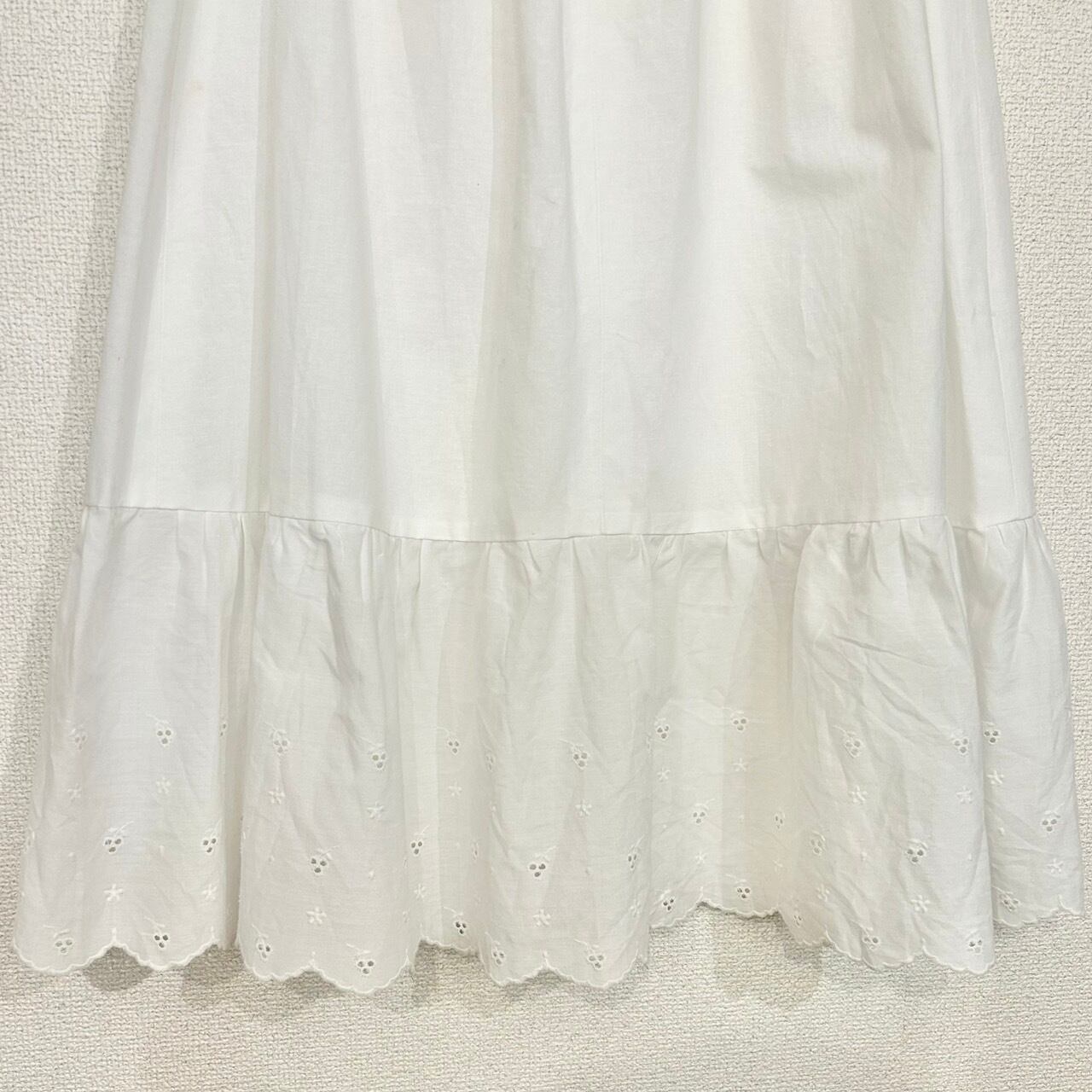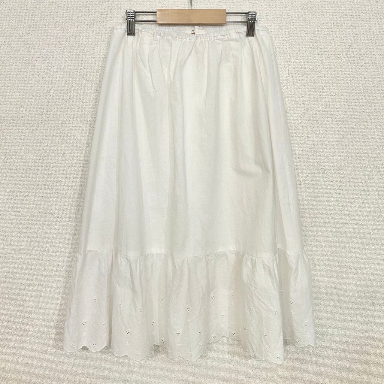 膝下丈の白スカート。裾の大きめのレースがヒラリと広がっていて可愛いスカートです。
