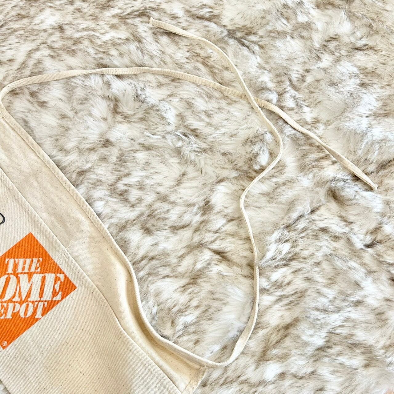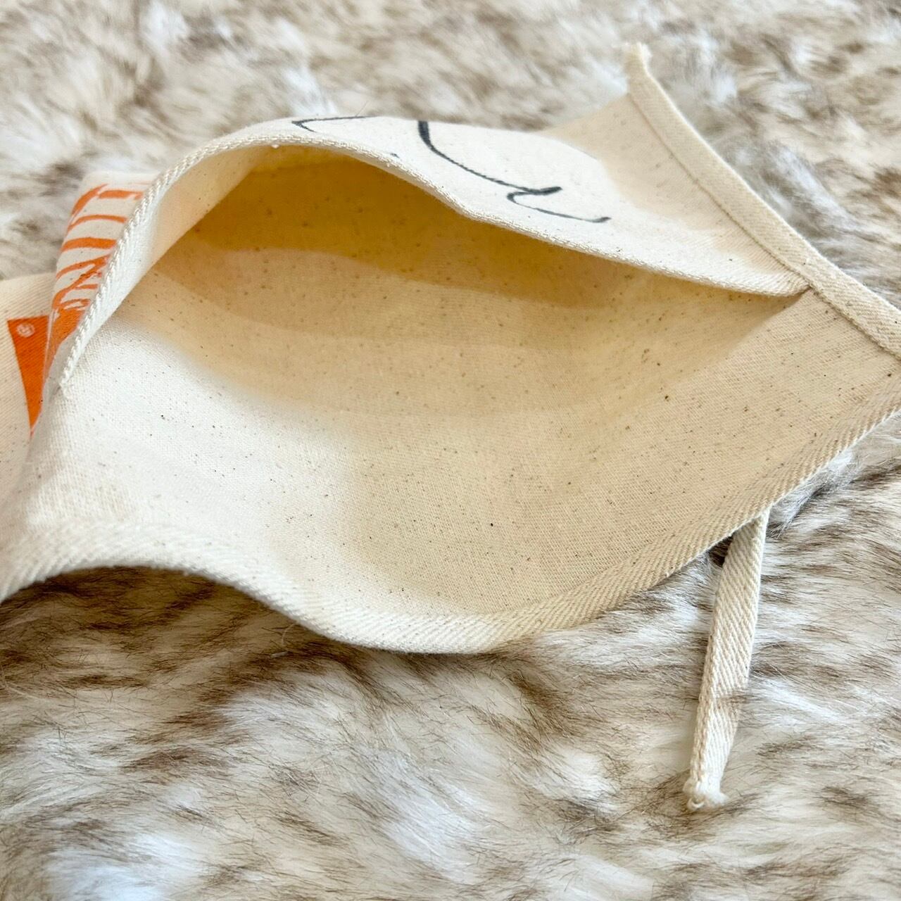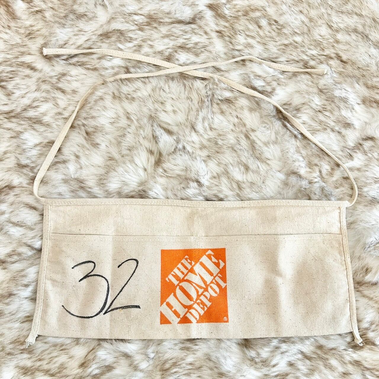 コットン素材のワークエプロン。コットン素材のキャンバス地で2つポケットが付いていて小物を入れて使うこともできますし、ファッションのアクセントとしても使えます。ペイントで32と入っているのもポイントです。