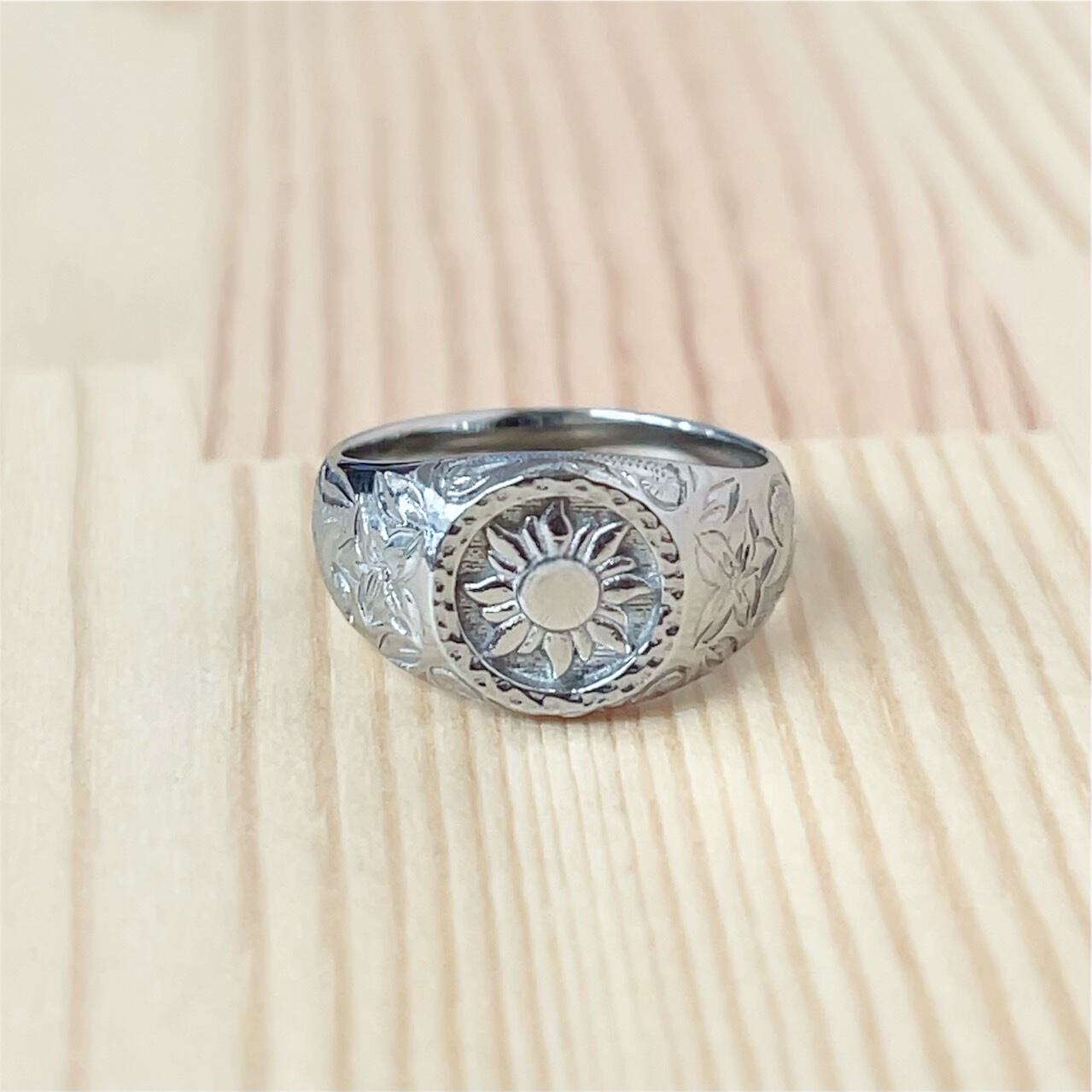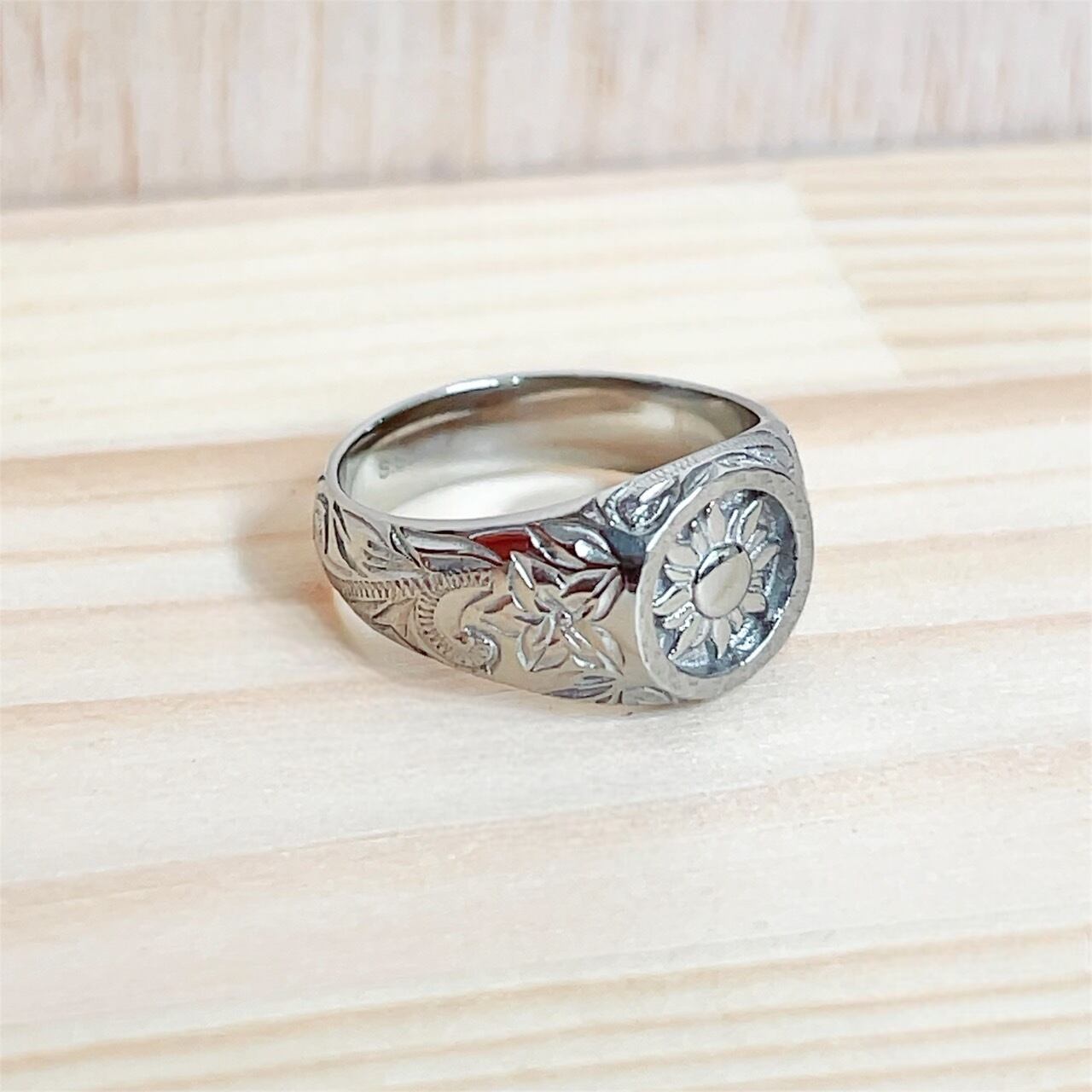 太陽モチーフが刻印されたシグネットタイプのハワイアンリング。