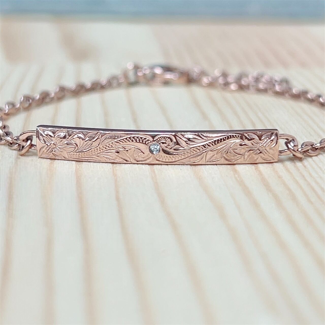 幸運の波であるスクロールとプルメリアモチーフのバーブレスレットです。
