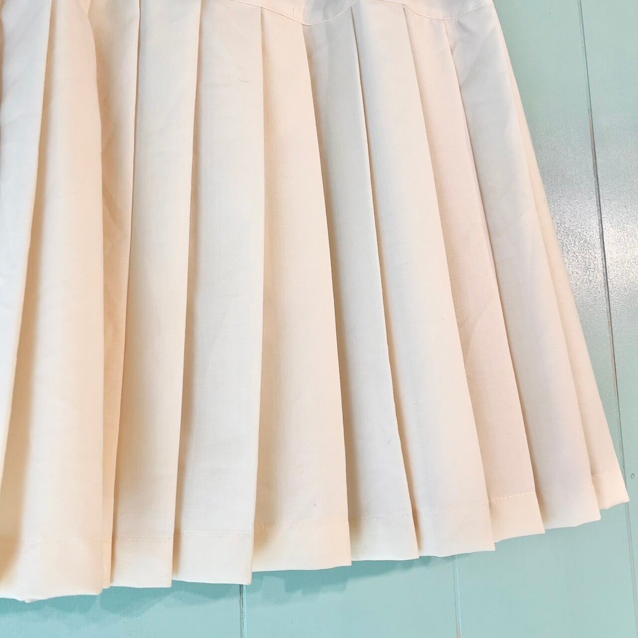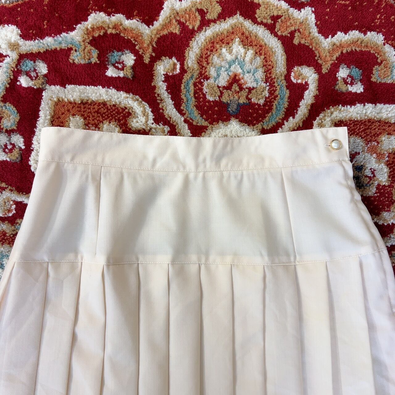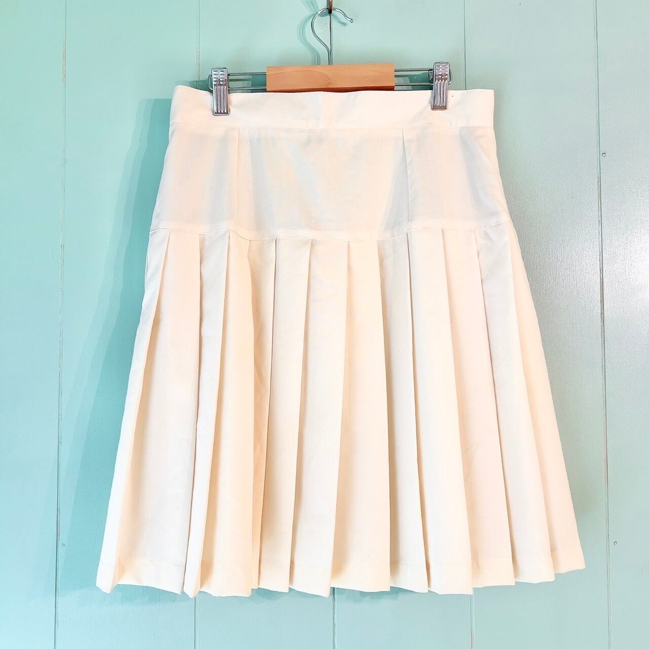 ウール素材のクリーム色プリーツスカート。サイドのボタンが可愛いシンプルなプリーツスカートです。