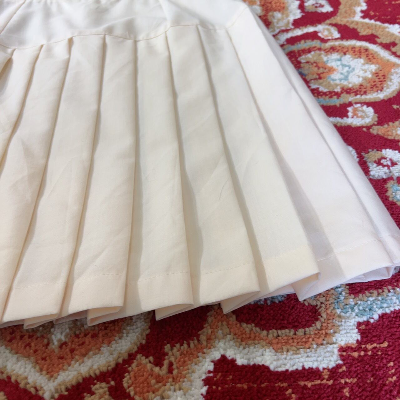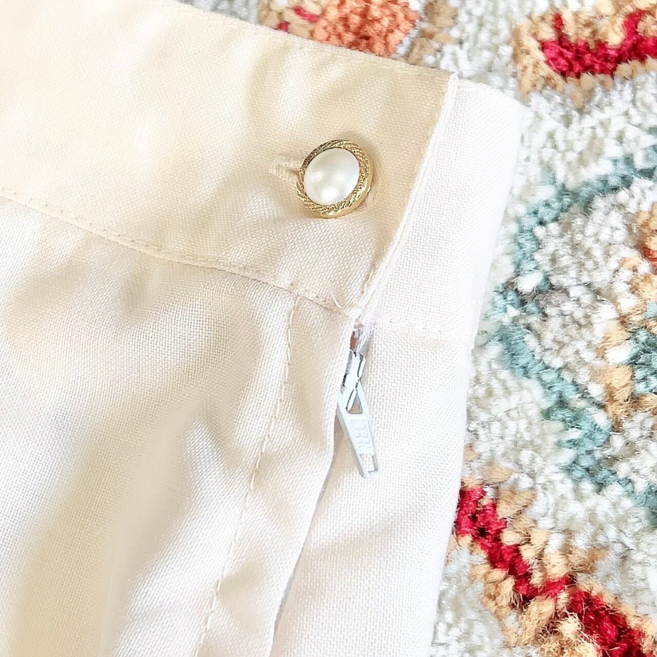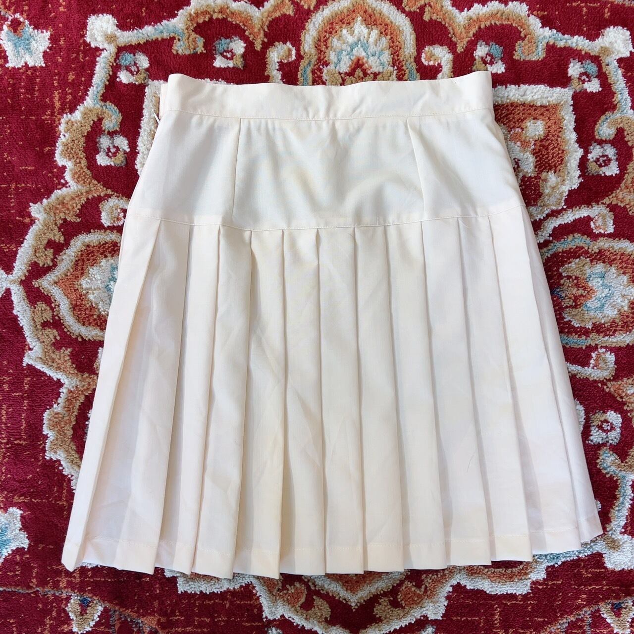 ウール素材のクリーム色プリーツスカート。サイドのボタンが可愛いシンプルなプリーツスカートです。