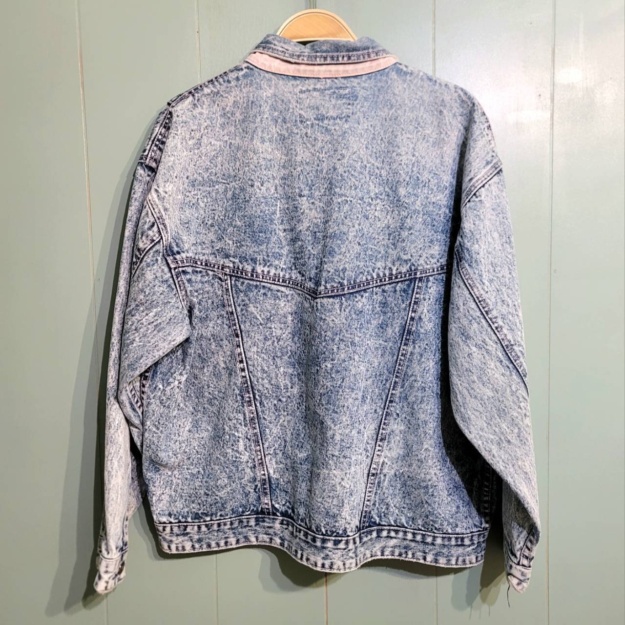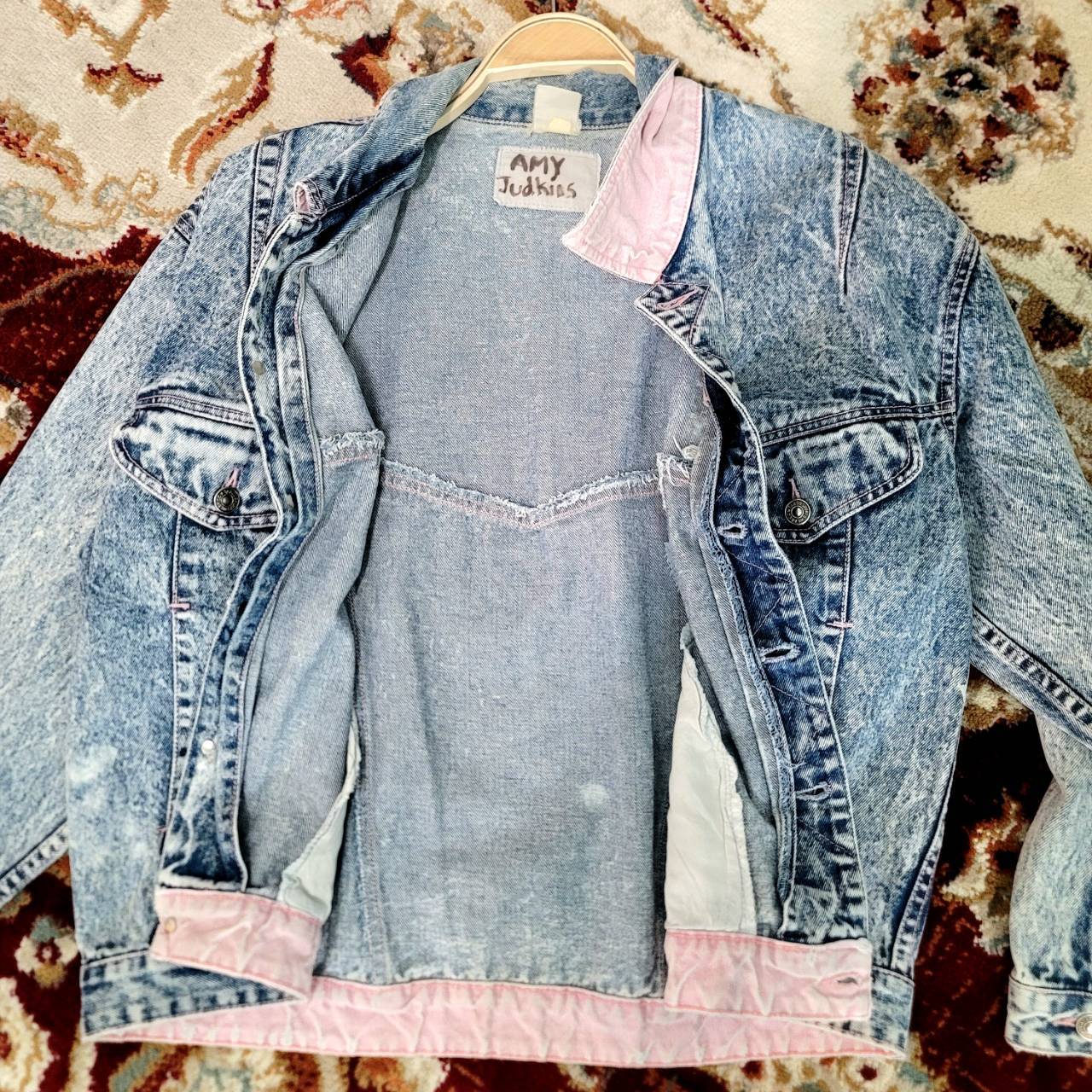 ピンク色のステッチがアクセントになったデニムジャケットです。