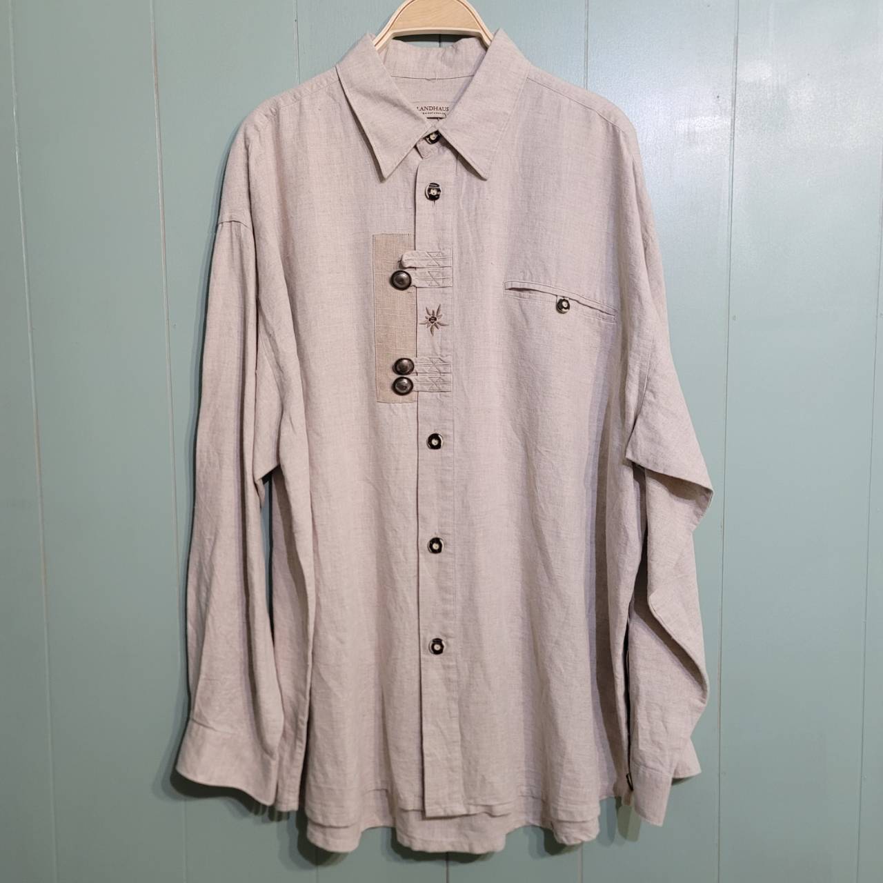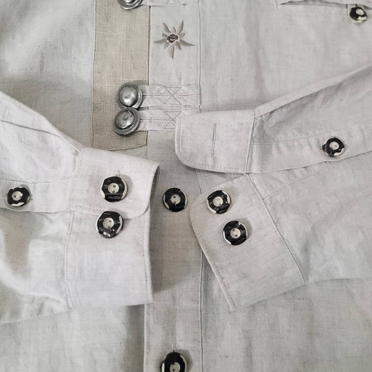 装飾の金属ボタンがポイントの長袖チロリアンシャツです。