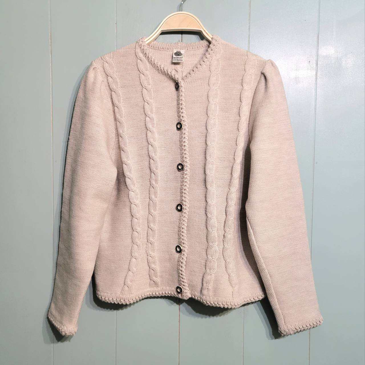 肉厚ウールのケーブルニットカーディガンです。