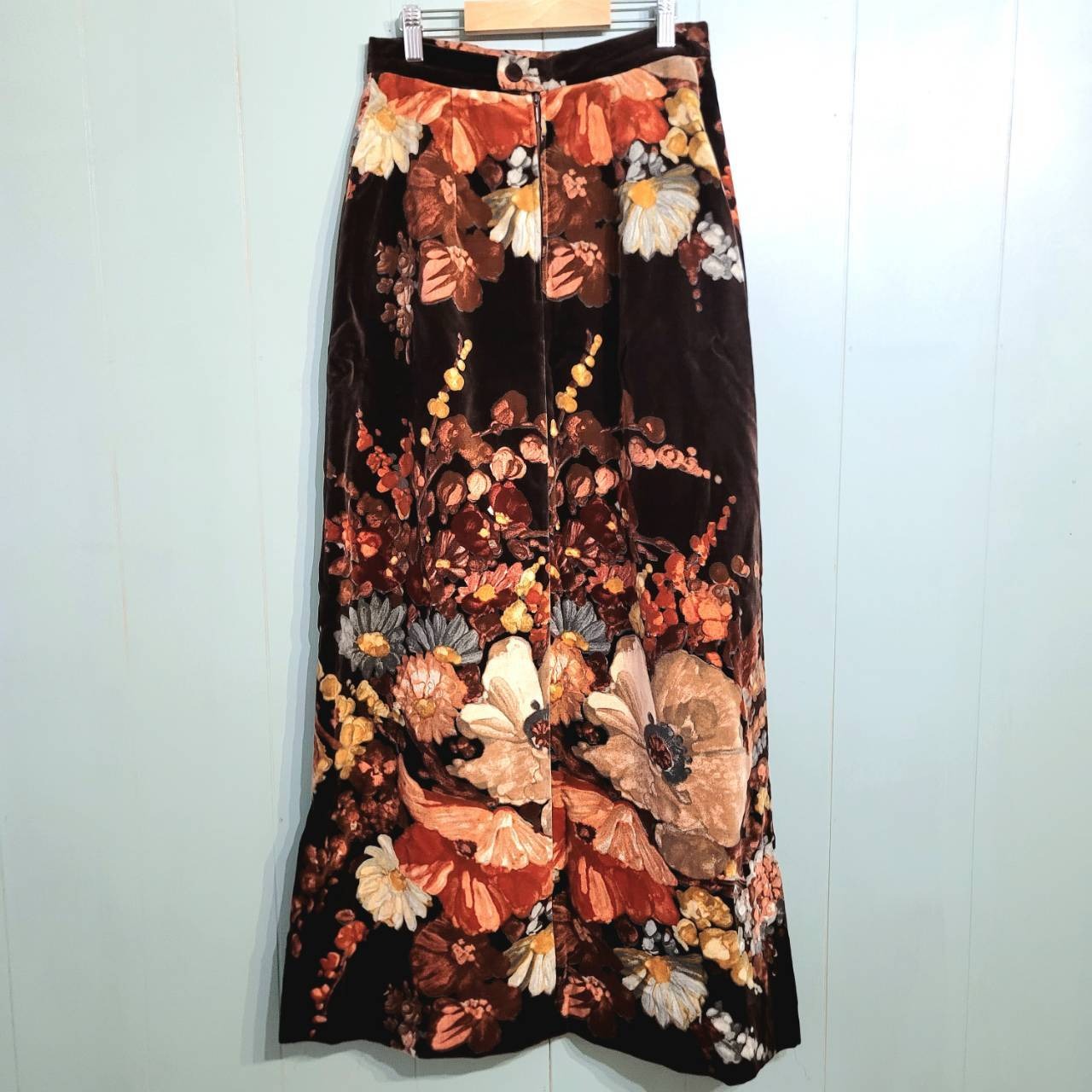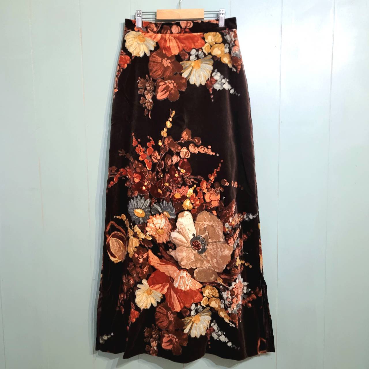 velours floral pattern long skirt