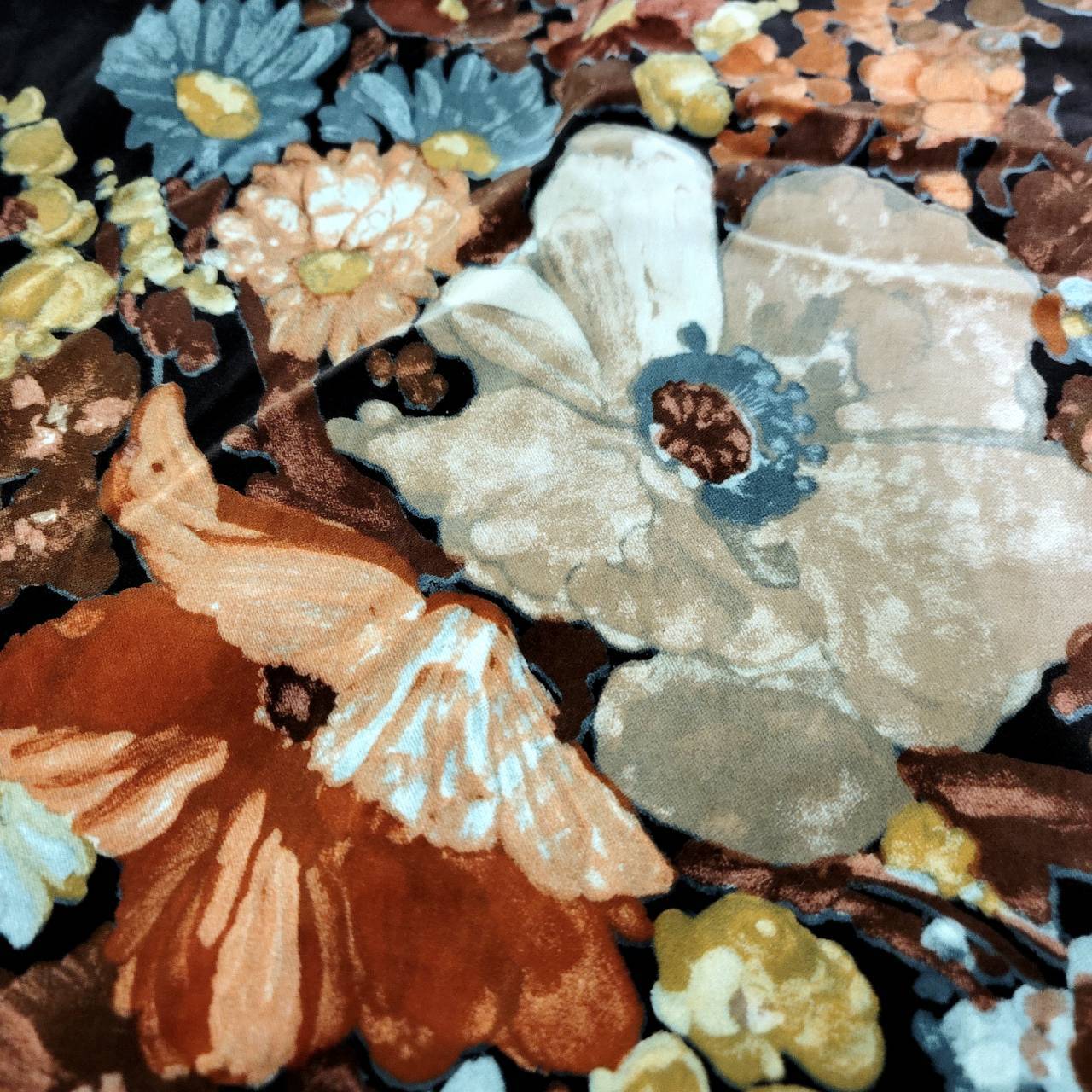 ベロア素材の大胆な花柄の