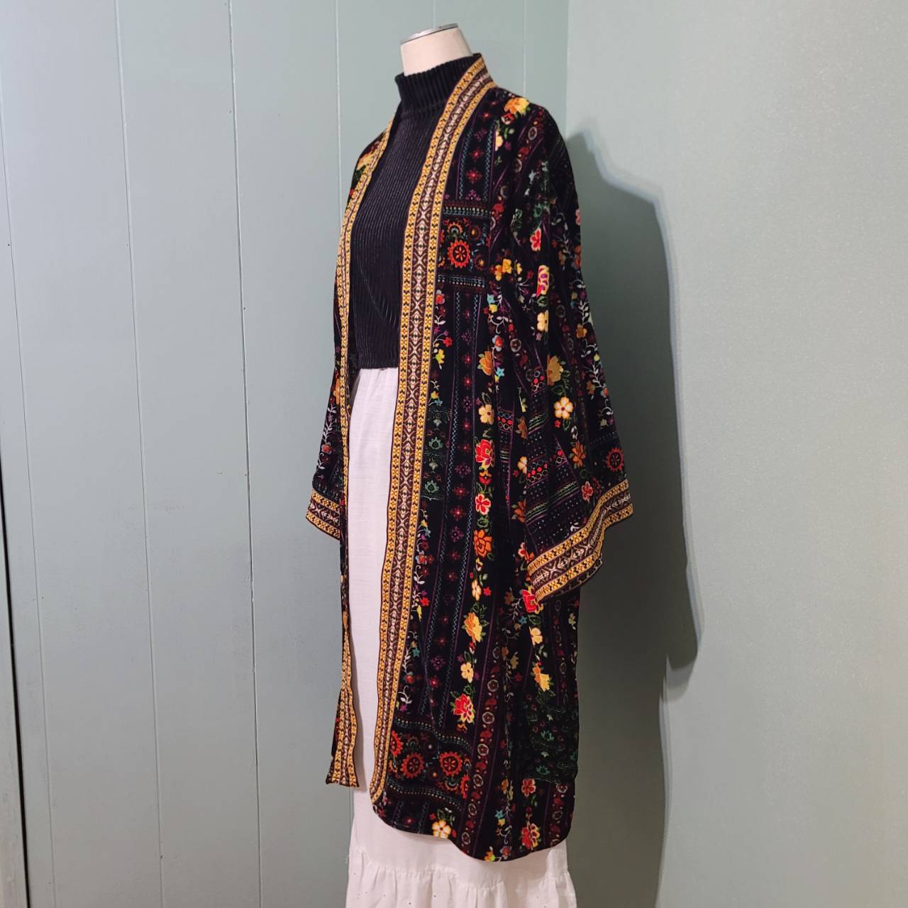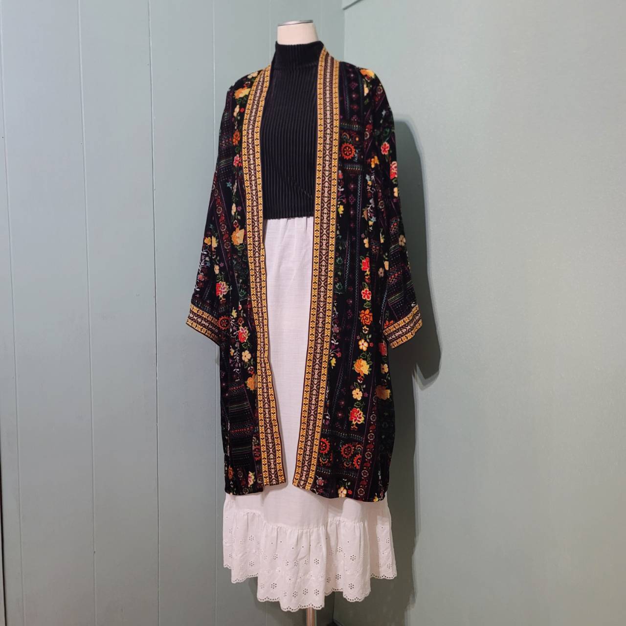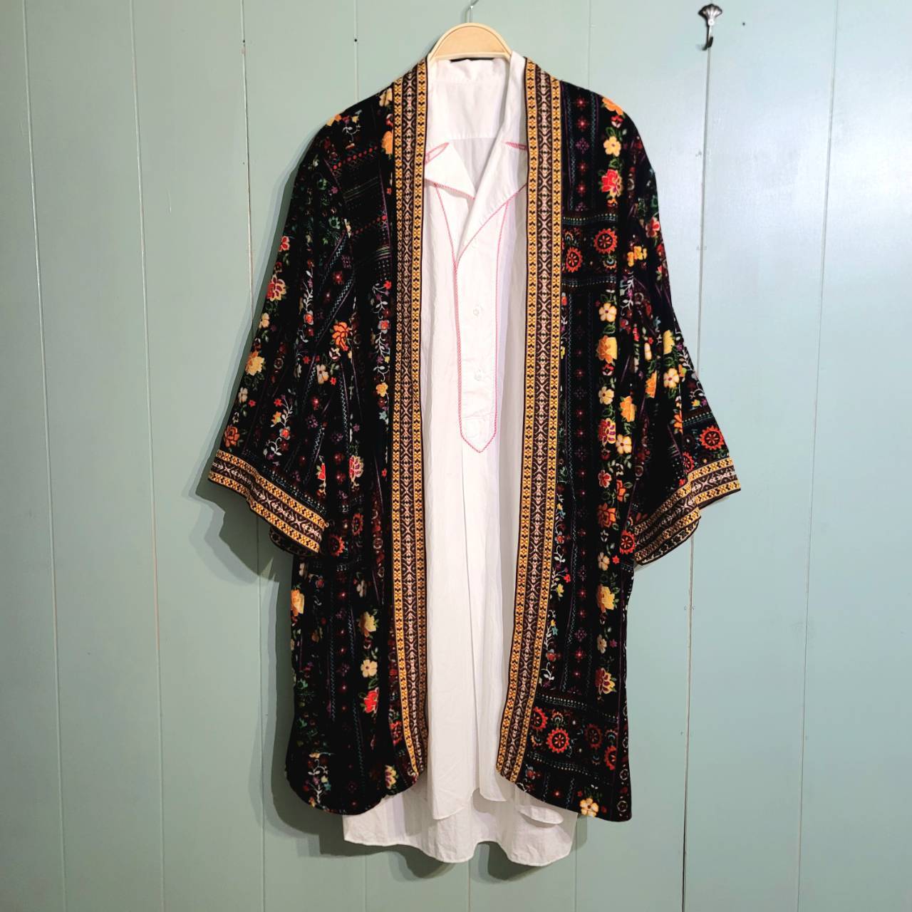 総花柄のガウンカーディガンです。