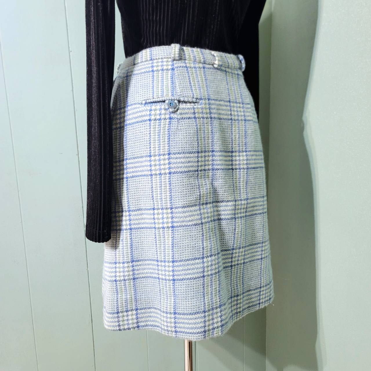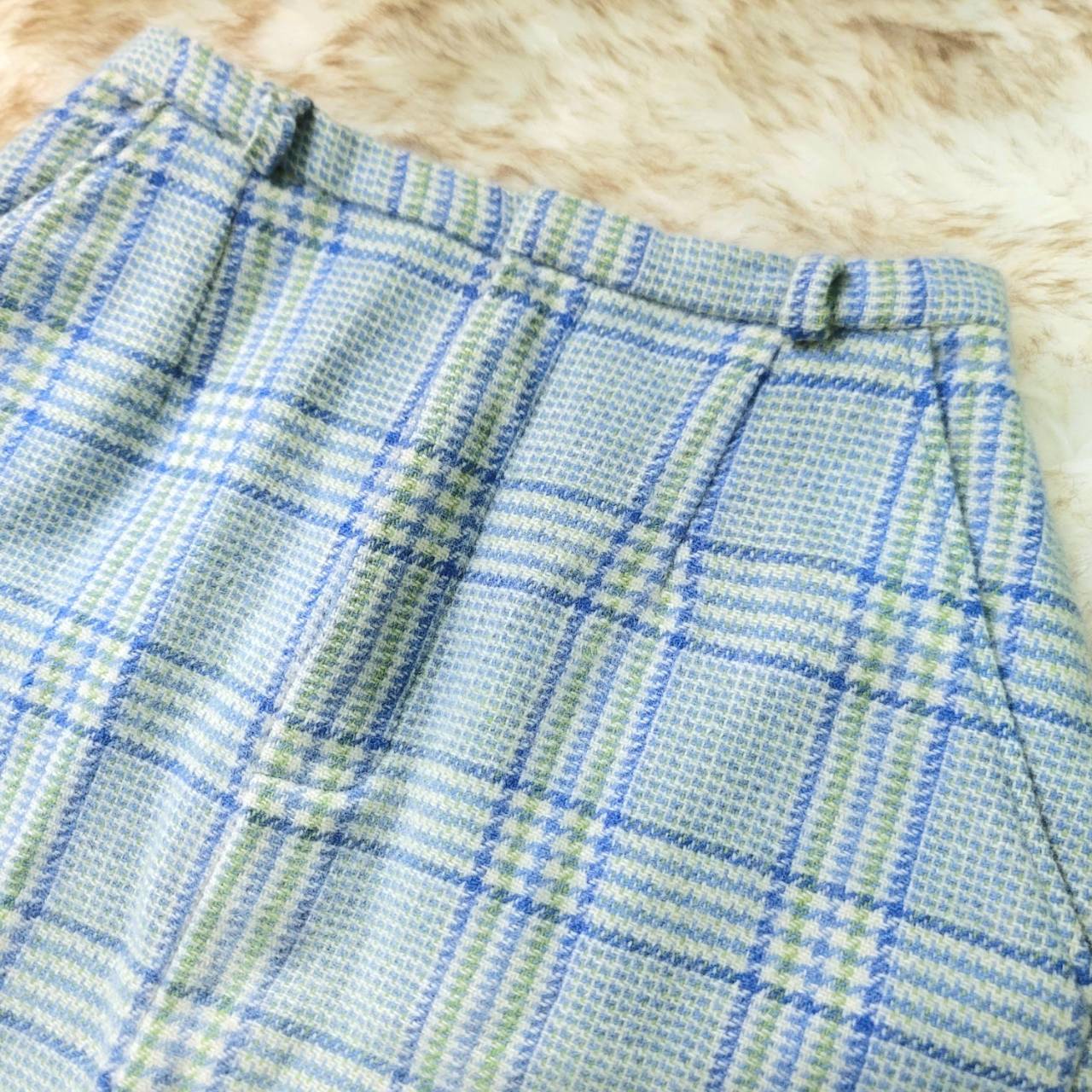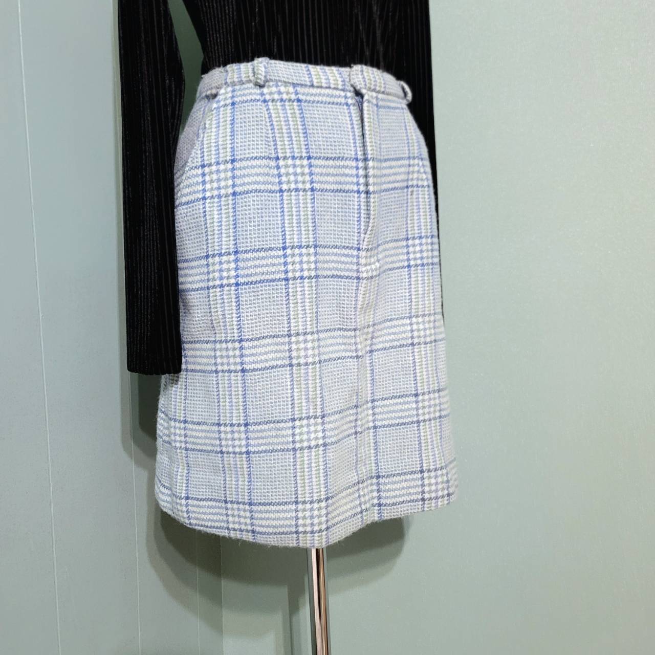 淡い水色のチェック柄膝上丈