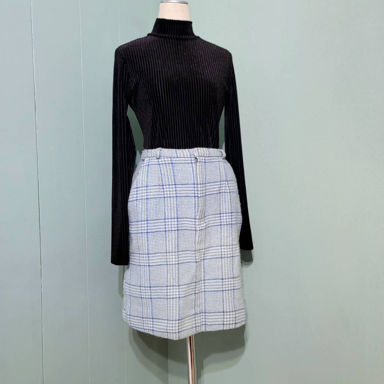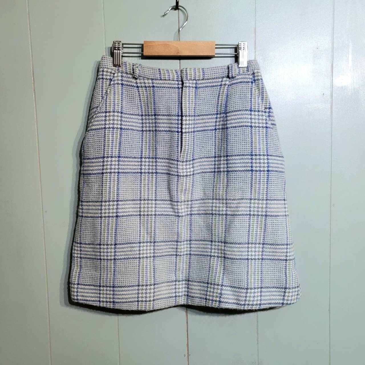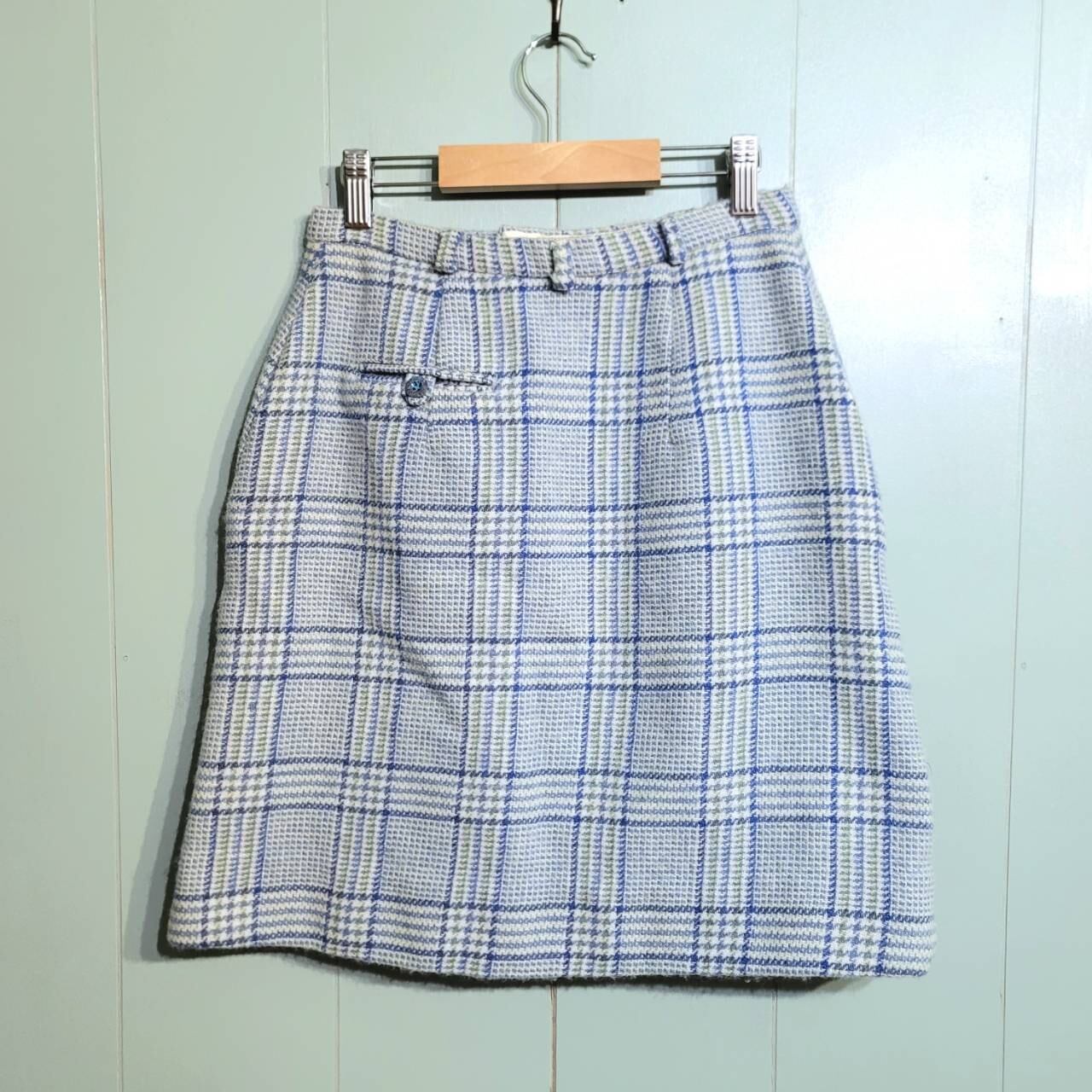 淡い水色のチェック柄膝上丈