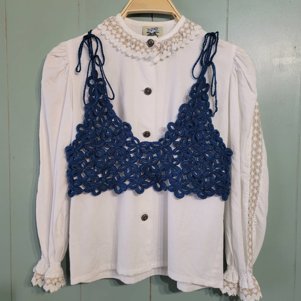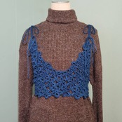 flower knit bustier camisole -blue-