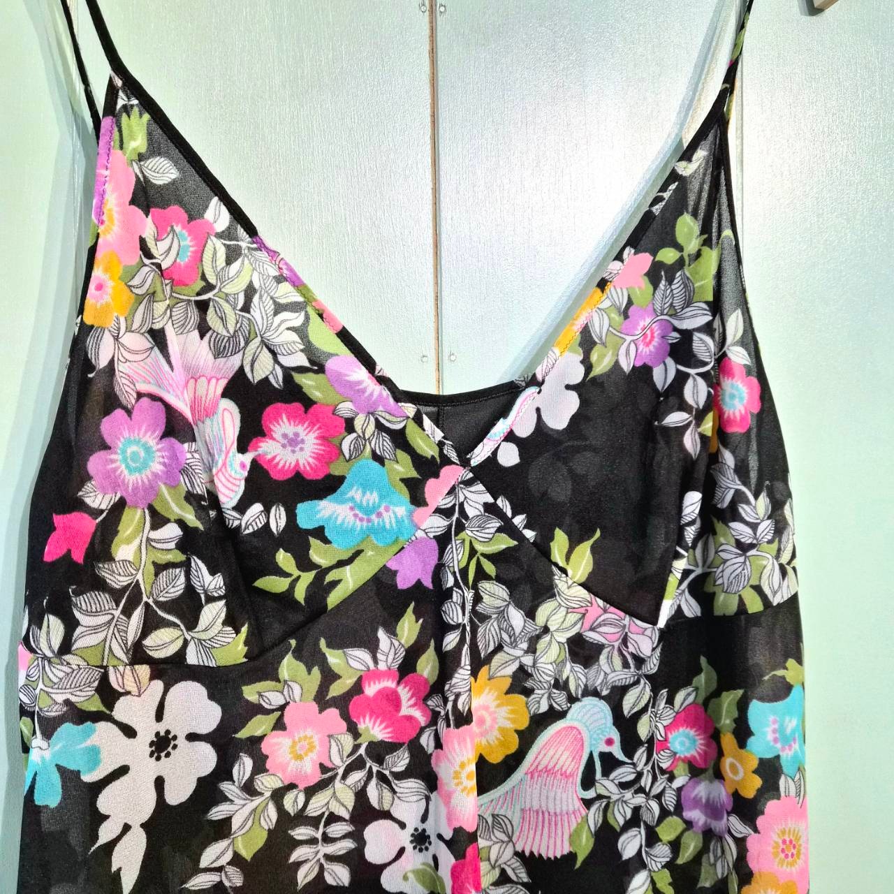 floral pattern see through camisole one piece