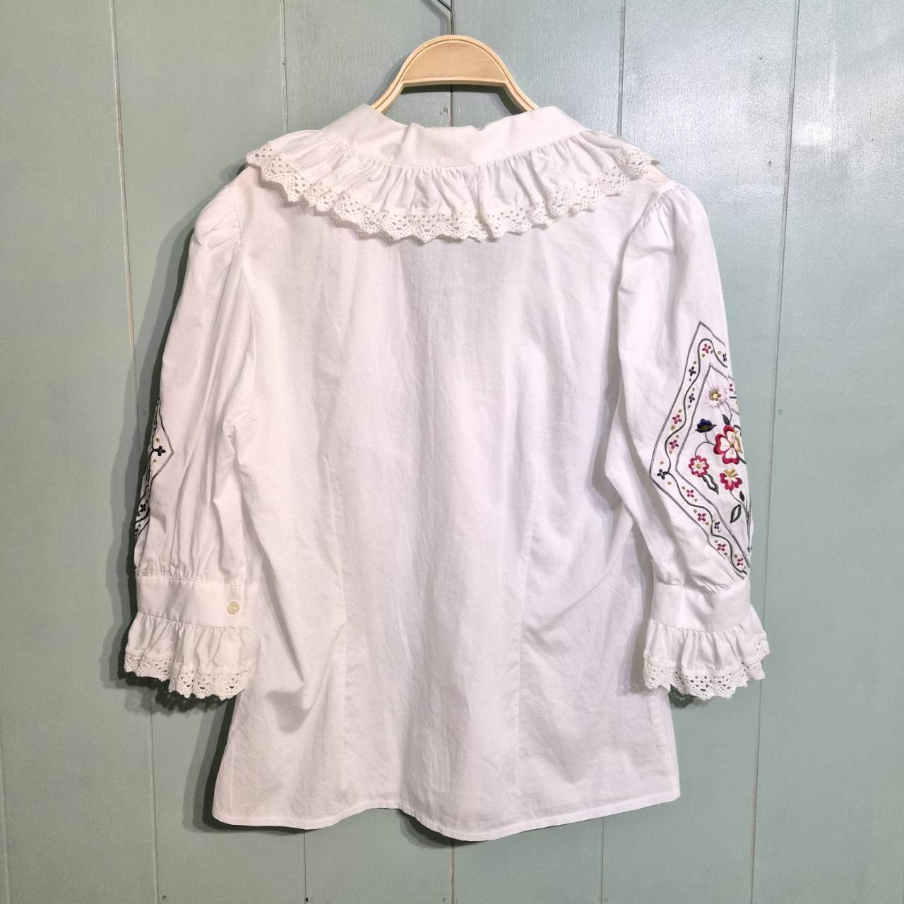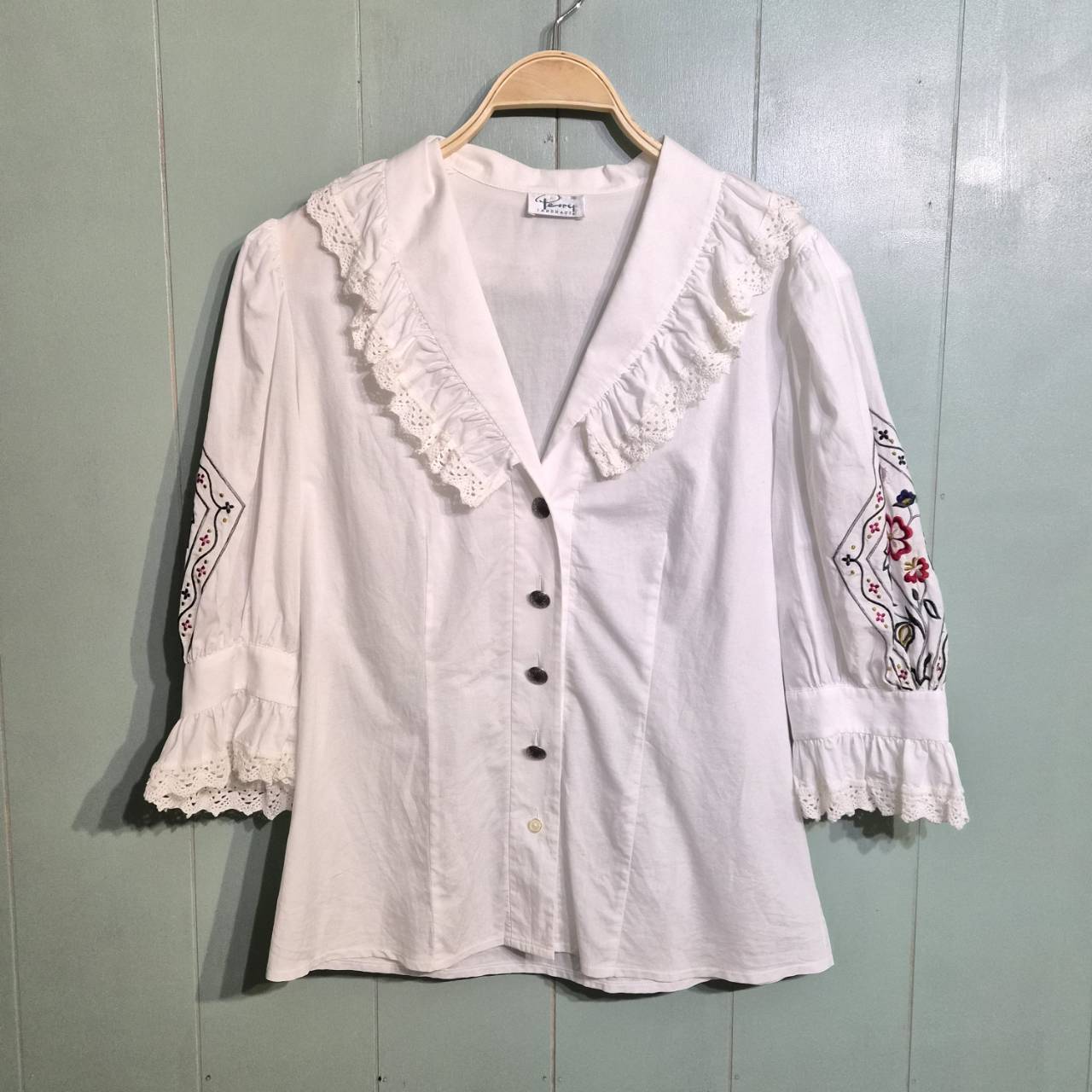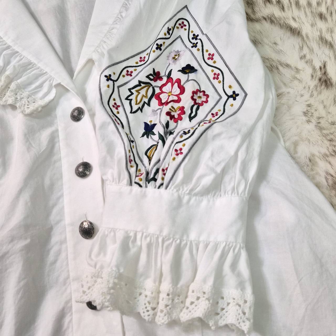 tyrolean flower embroidery frill blouse