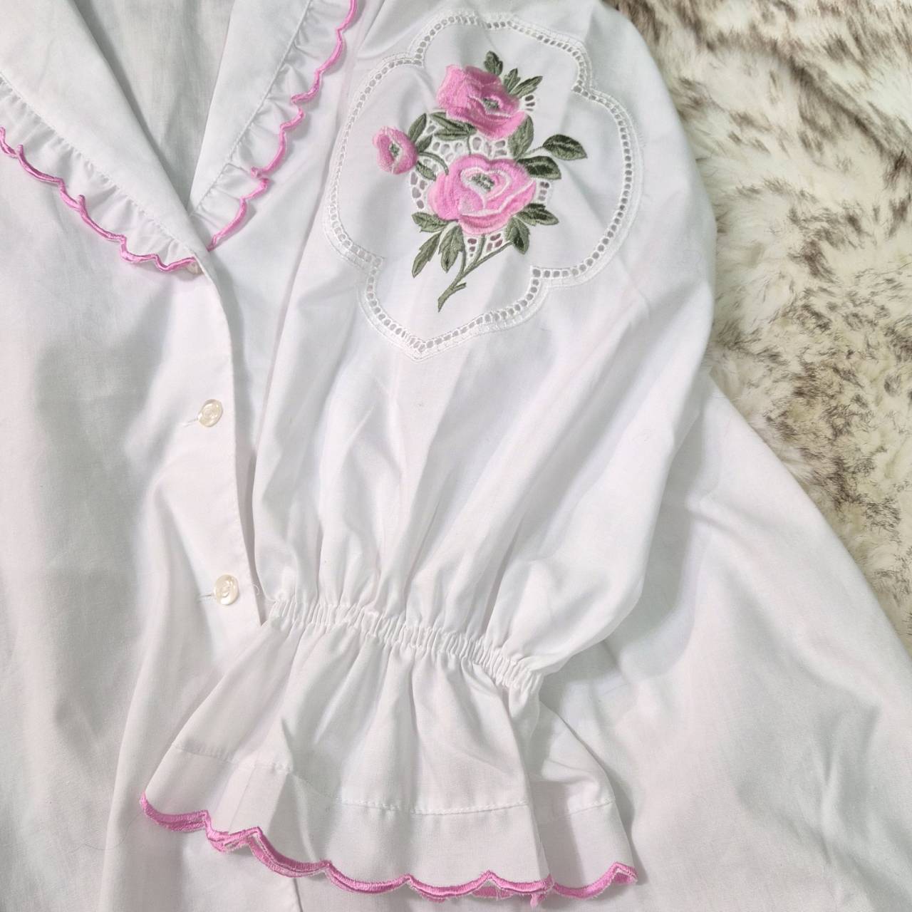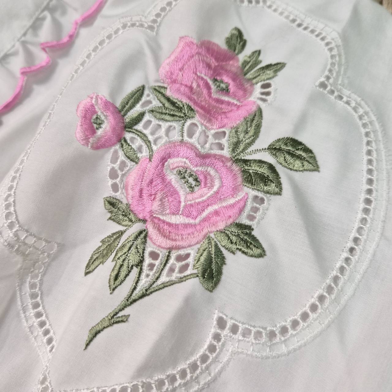 tyrolean pink rose embroidery blouse