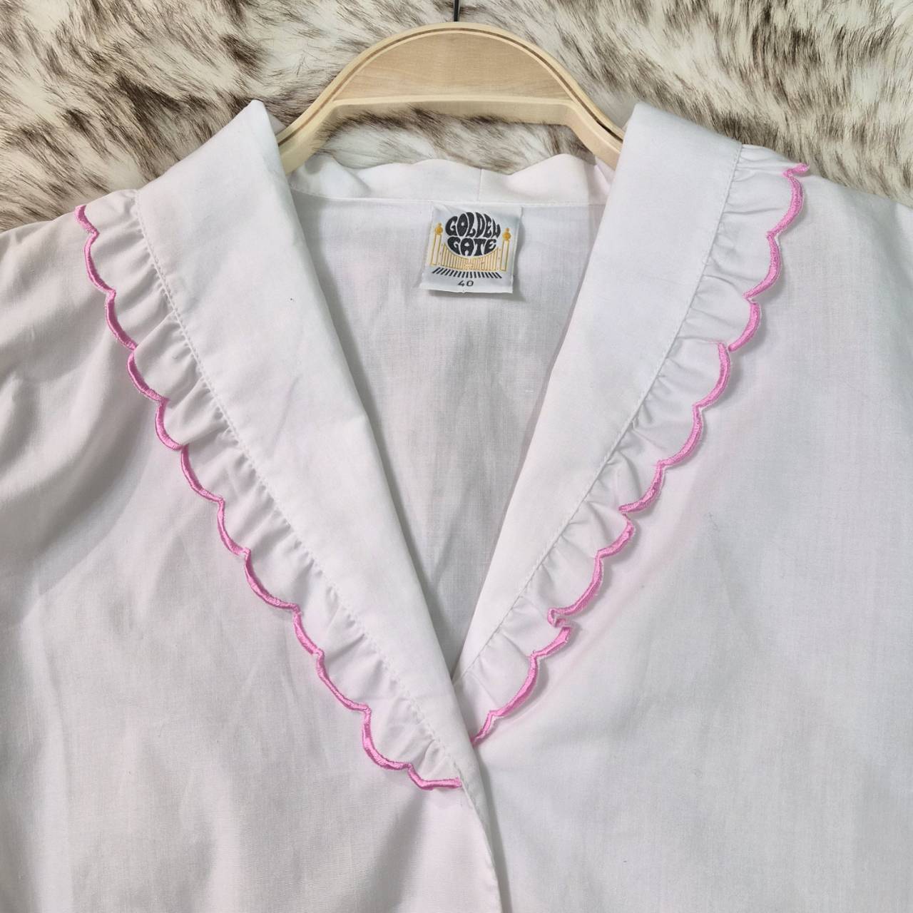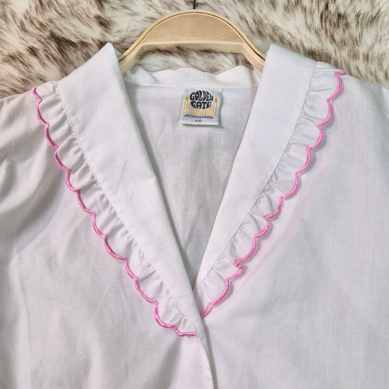 襟と袖のスカラップ刺繍が
