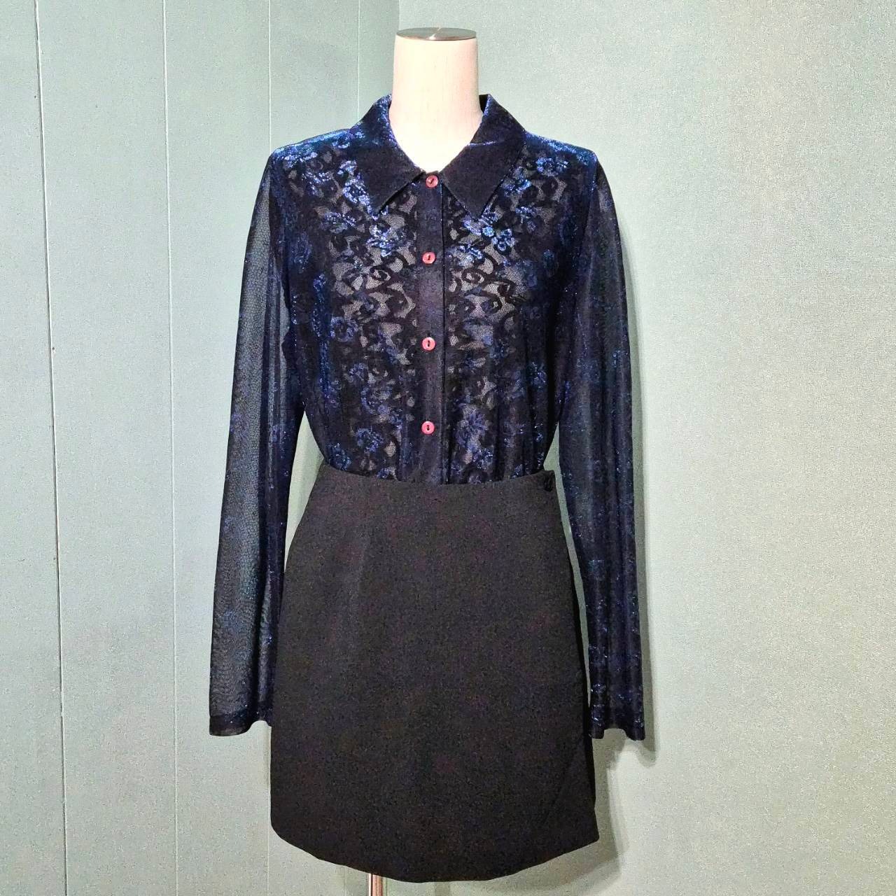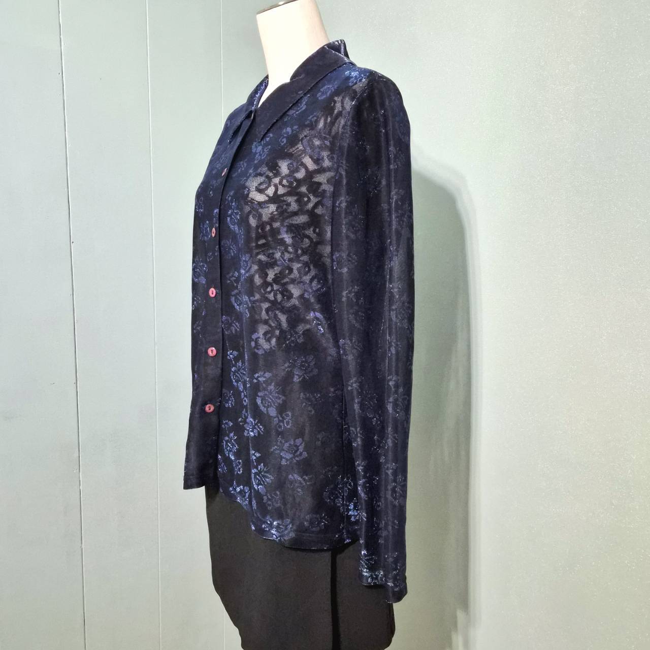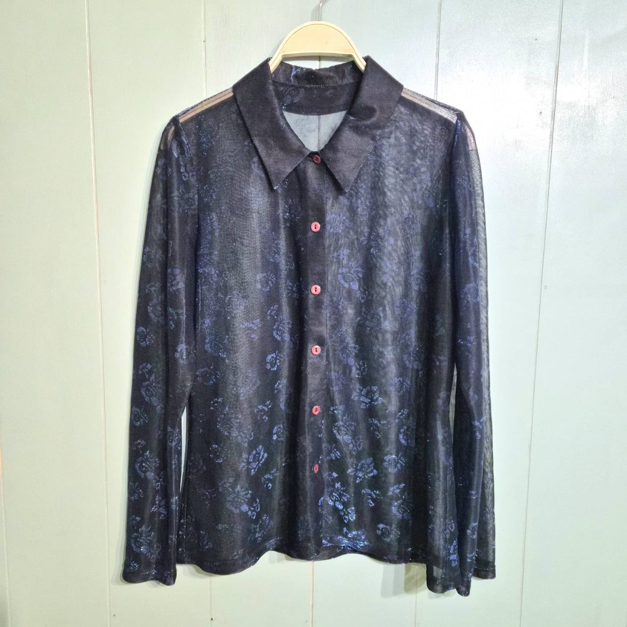 薔薇模様のシースルー長袖ブラウスです。