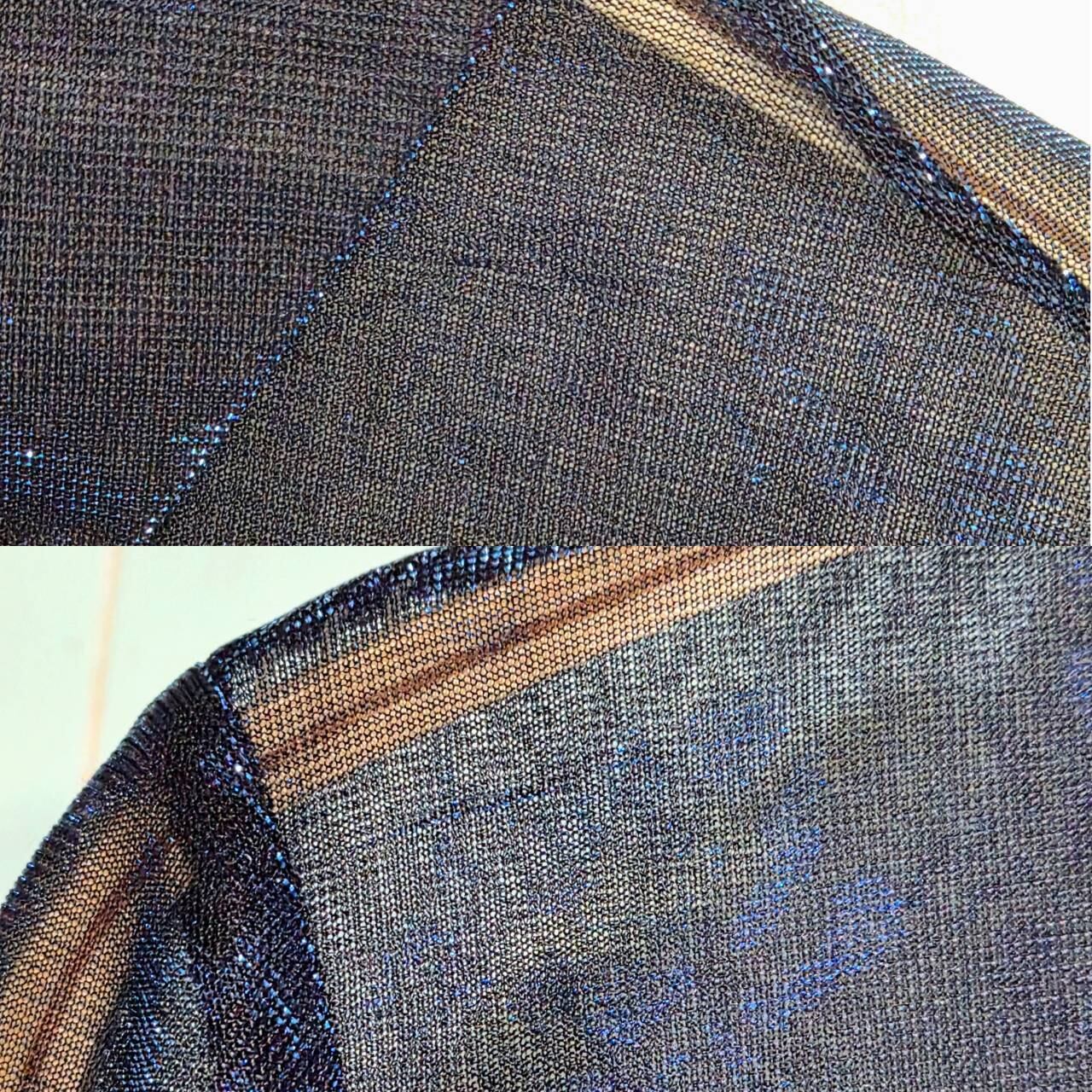 薔薇の模様部分と襟はラメ糸が編み込まれて