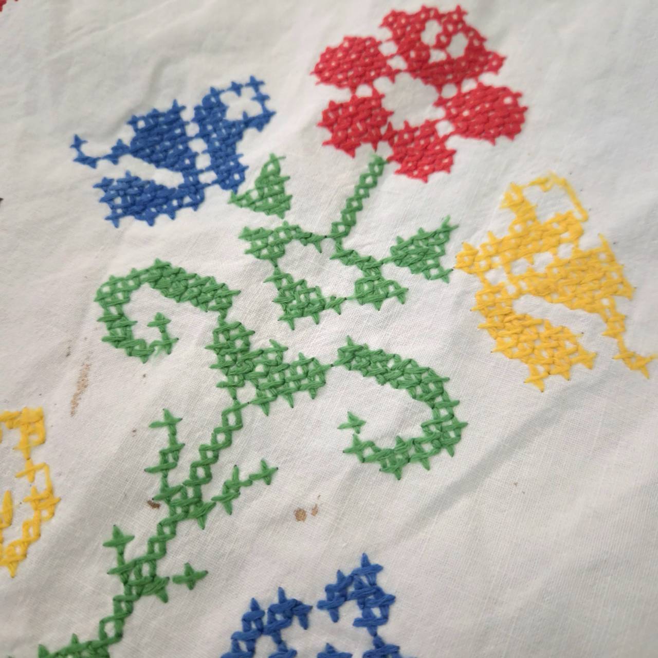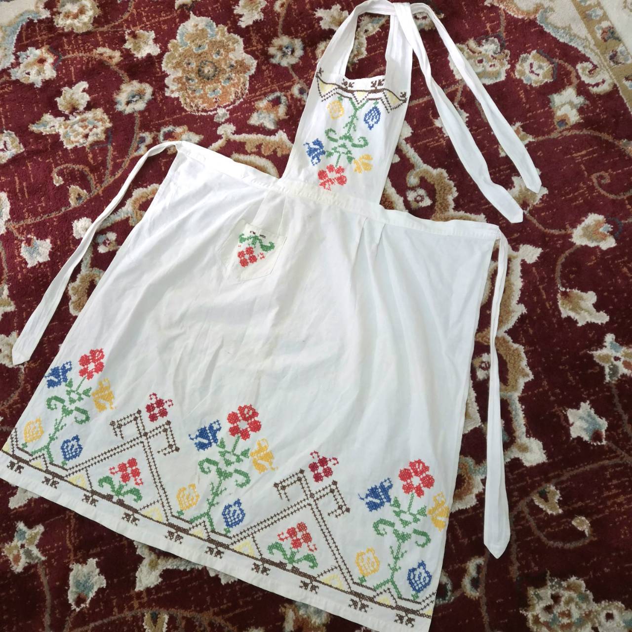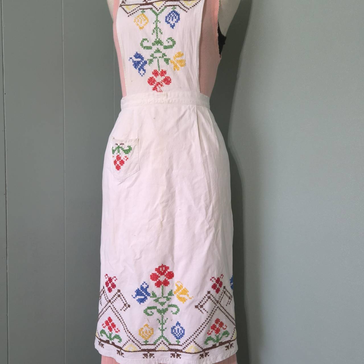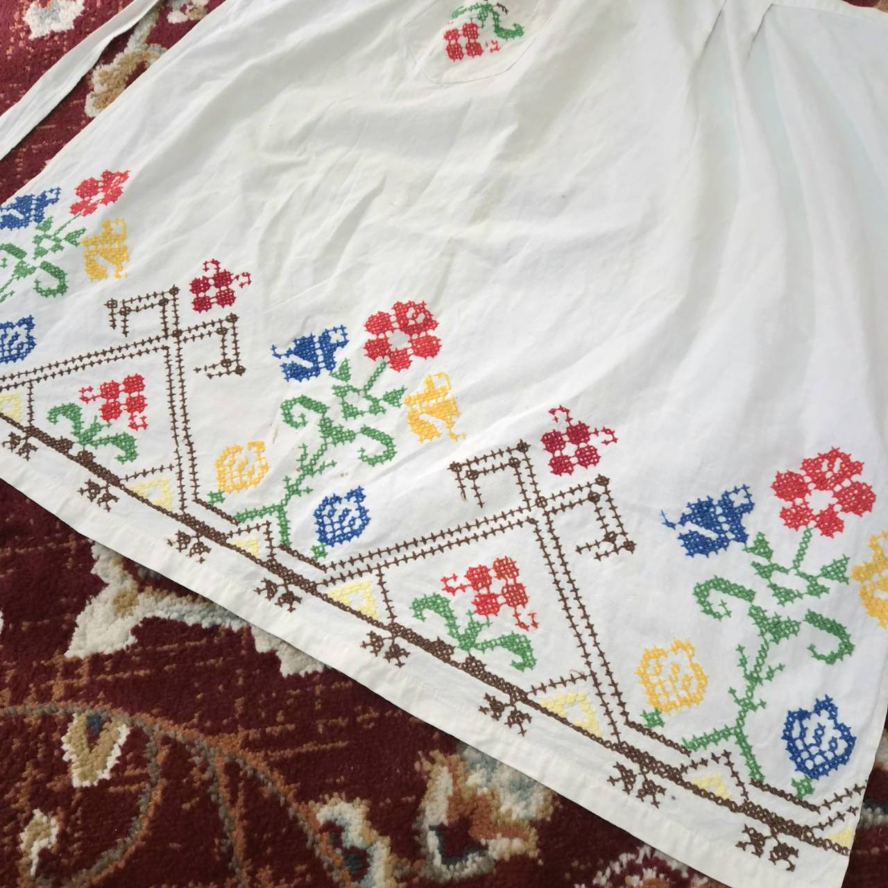 vintage apron -colorful flower embroidery-
