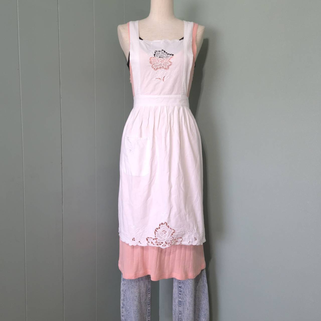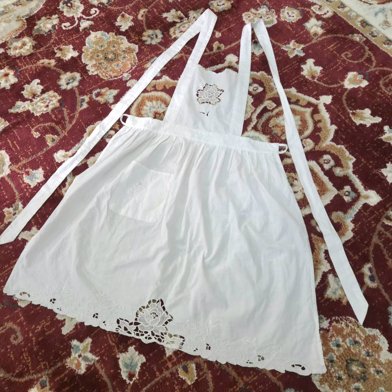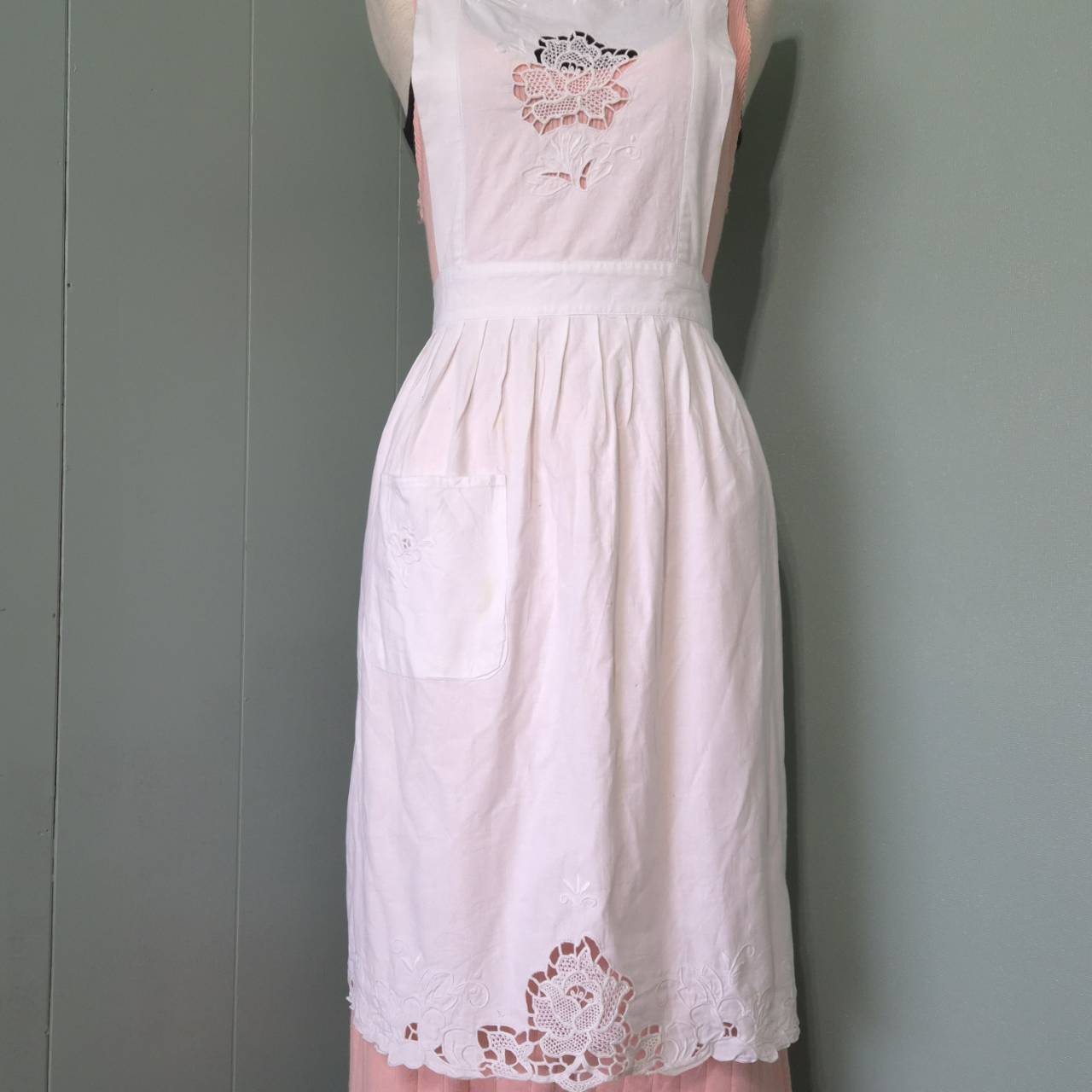 vintage apron -flower lace embroidery -